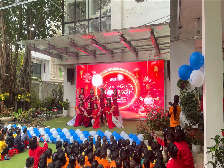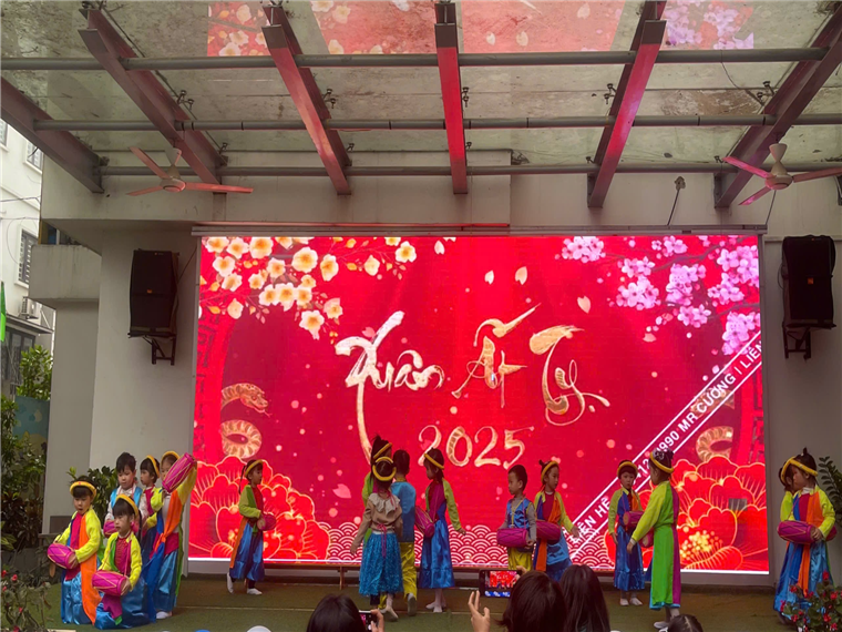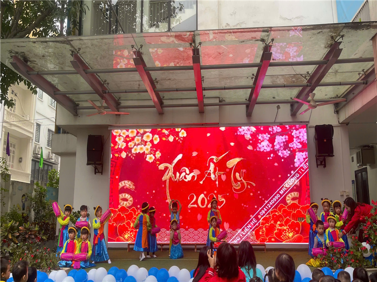 Trong không khí tưng bừng, vui tươi, phấn khởi, chào đón năm mới chương trình được bắt đầu với tiết mục Trống cơm do các bé lớp 4-5 tuổi thể hiện cùng các tiết mục chào đón năm mới do cô và trò khối lớn thể hiện.
