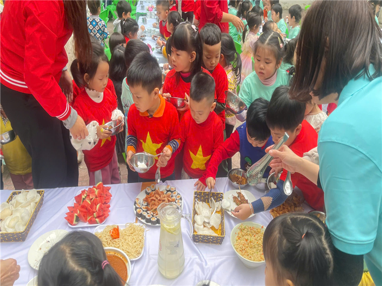 Tiết mục Trống Cơm của các bé lớp B2