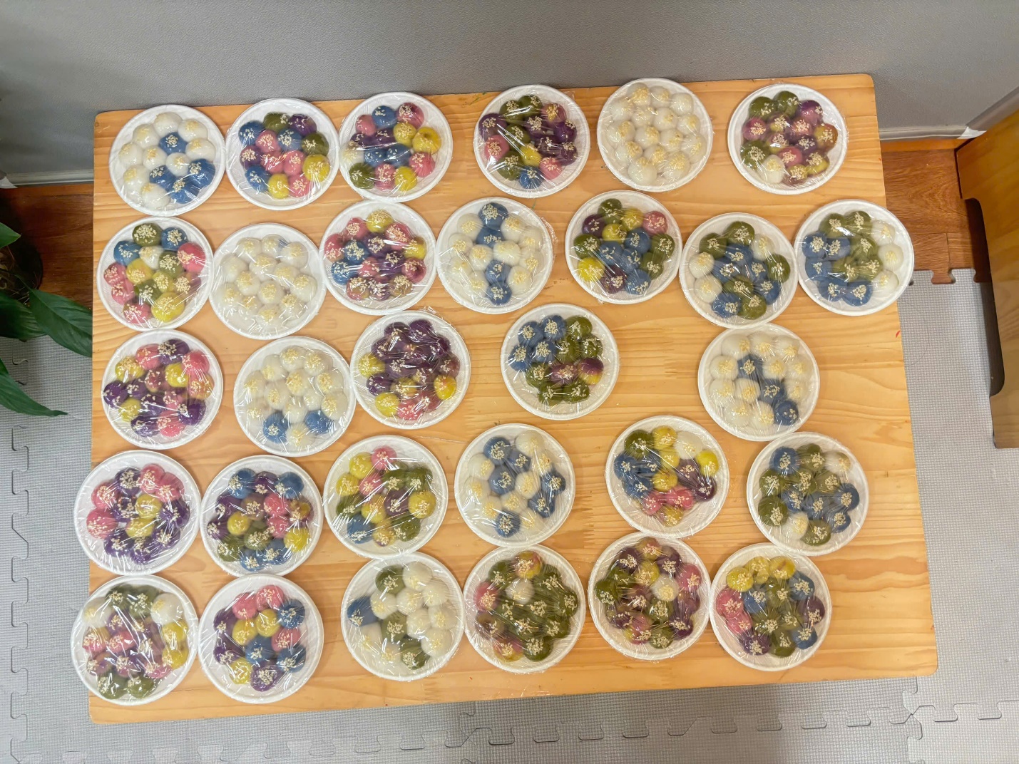 Những viên bột màu sắc được lăn tròn từ bàn tay của các bạn nhỏ