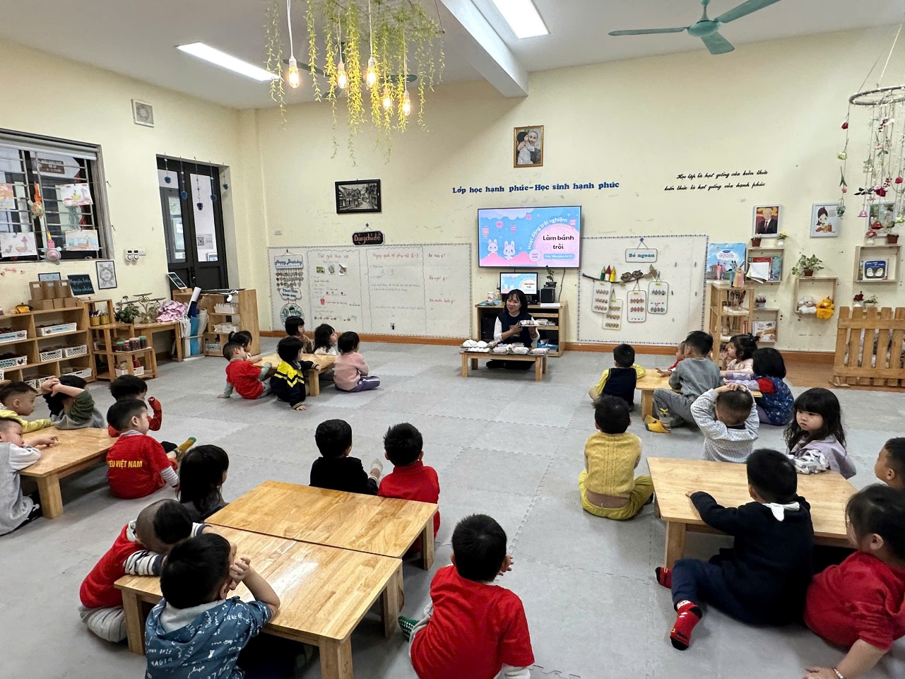 Các bé còn được trải nghiệm cảm giác vui sướng khi nhìn những chiếc bánh trôi từ từ nổi lên trên mặt nước, thể hiện sự thành công trong từng công đoạn. Đây là một hoạt động không chỉ giúp các bé khám phá thế giới ẩm thực mà còn là dịp để các con phát triển kỹ năng vận động tinh, khả năng phối hợp tay mắt và sự khéo léo trong công việc.