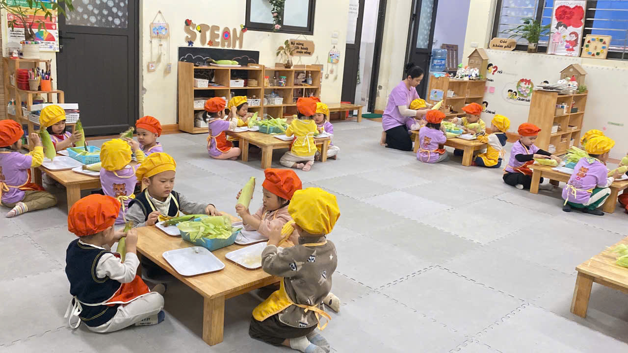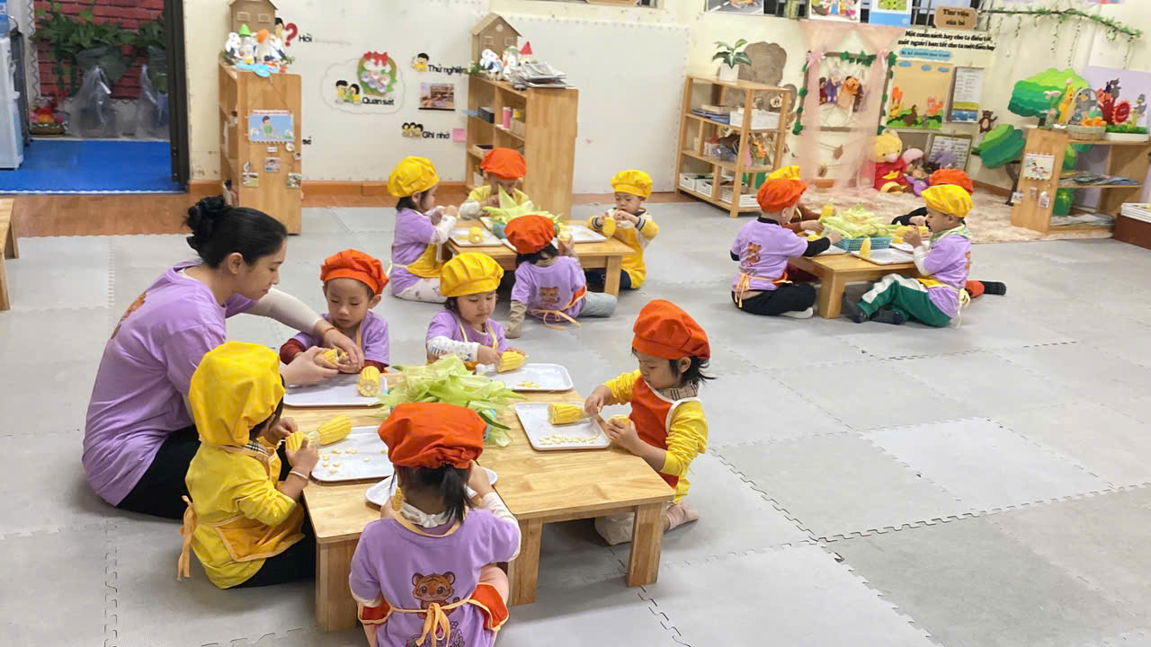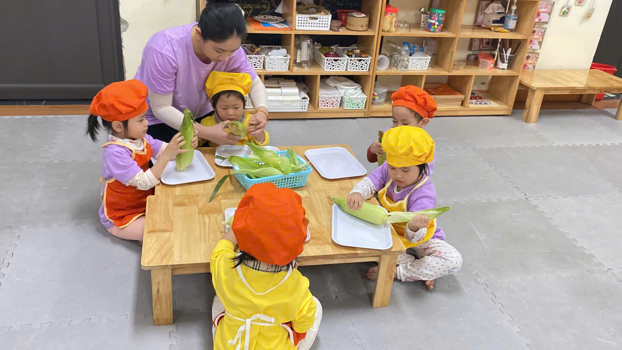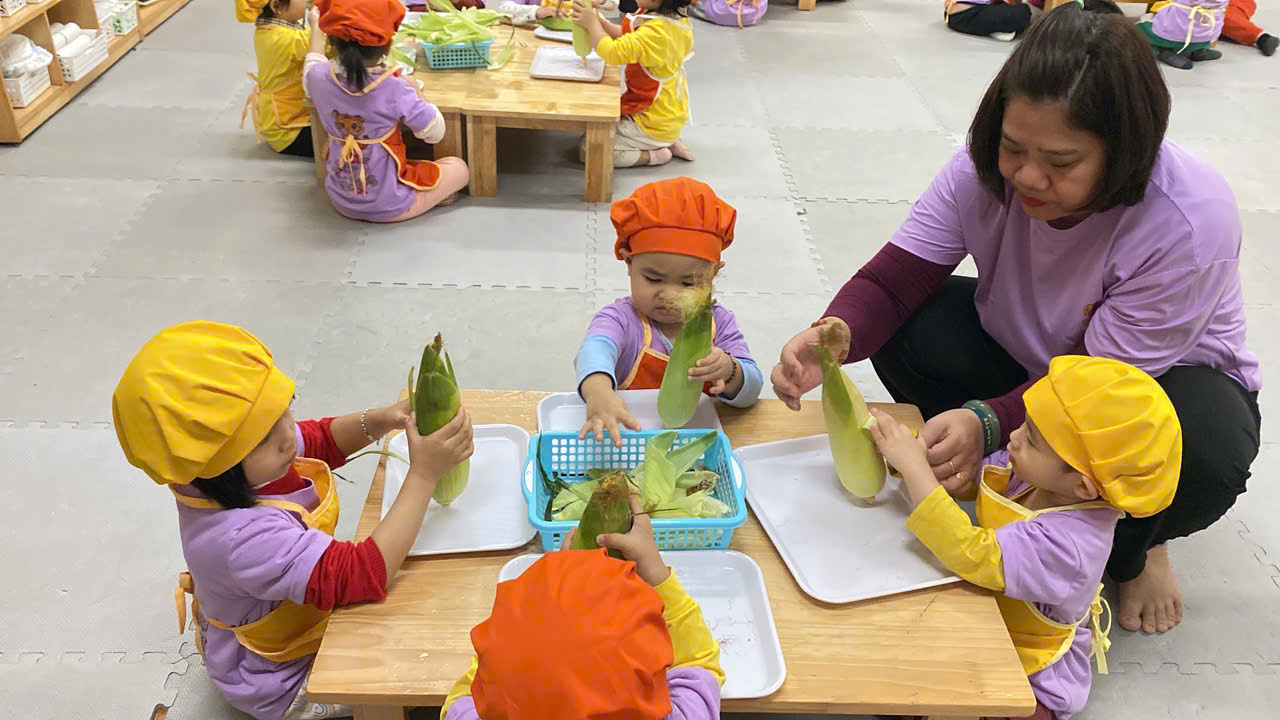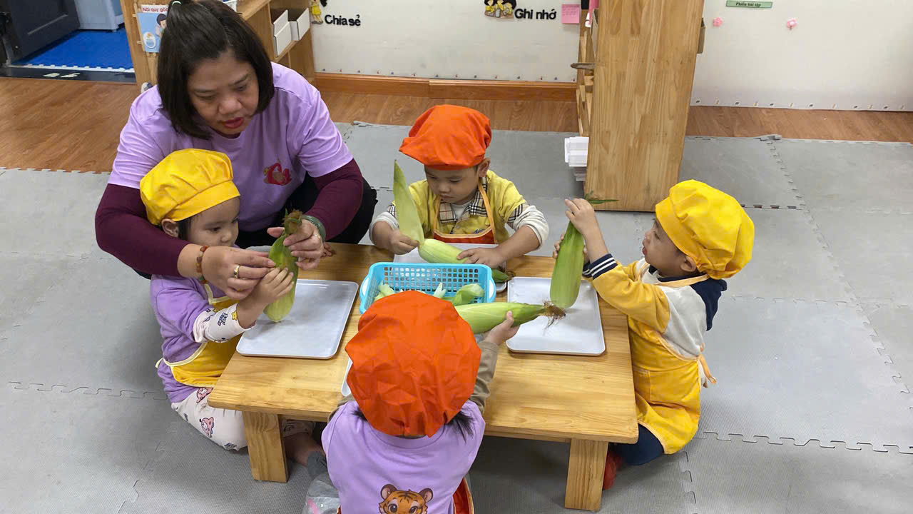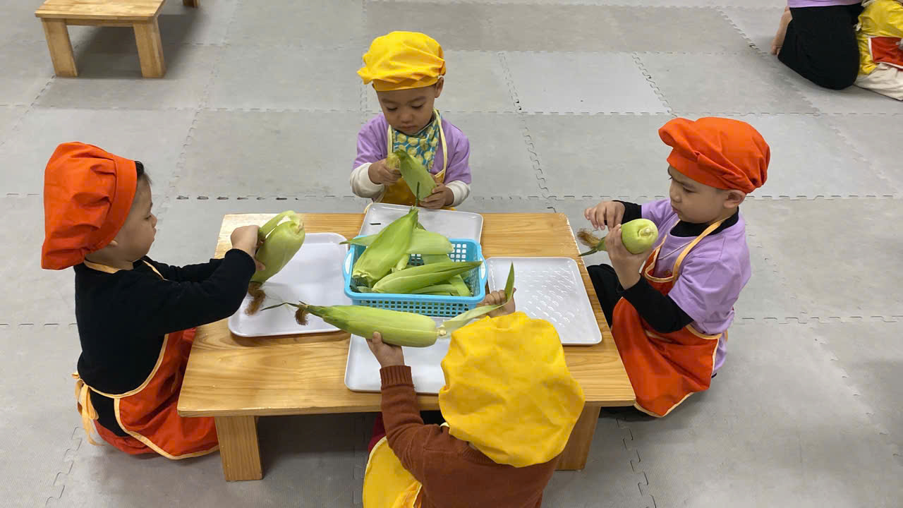 ✨Các bạn nhỏ lớp C1 rất hứng thú khi được cùng nhau khám phá về bắp ngô đấy bố mẹ ạ !