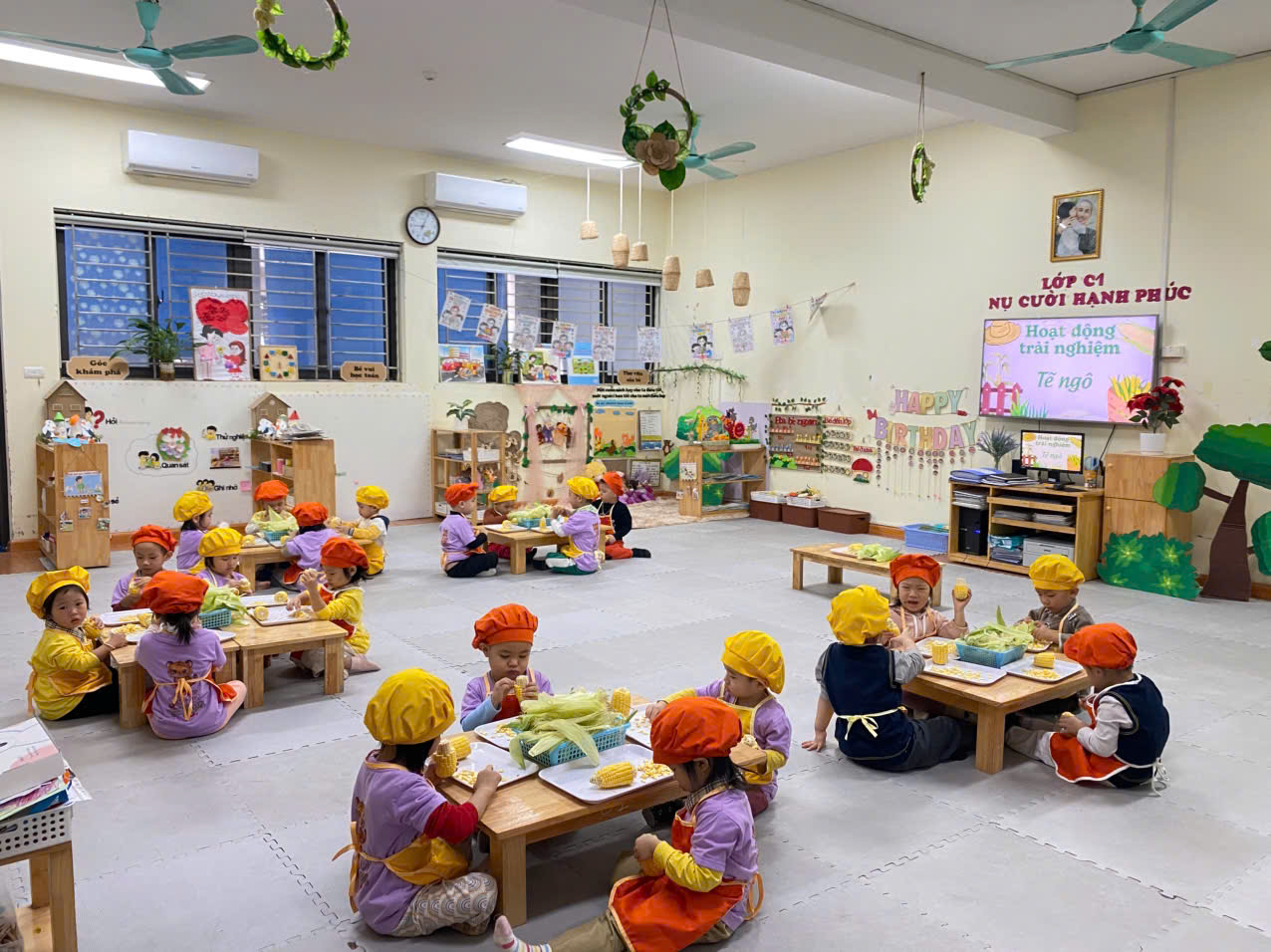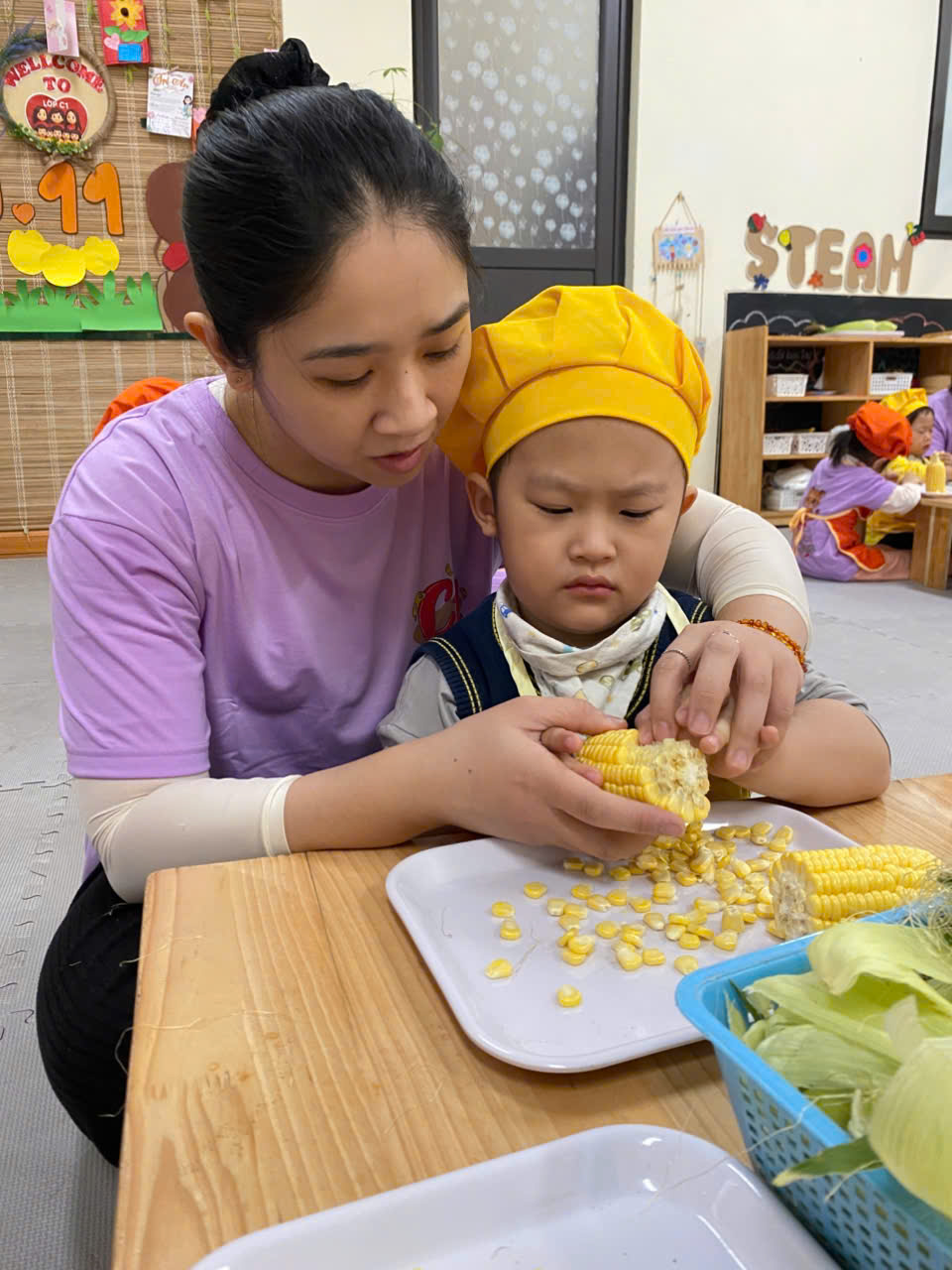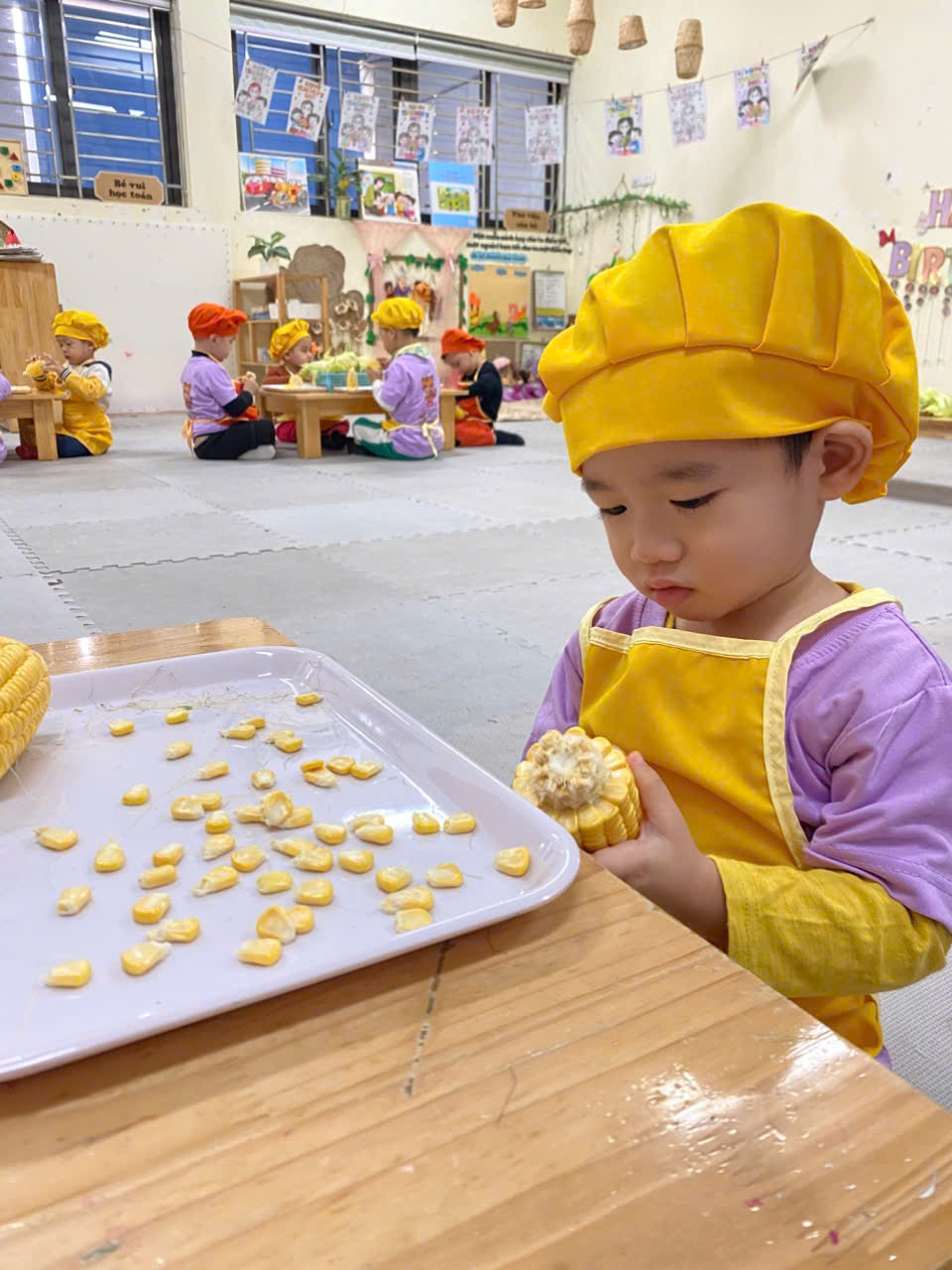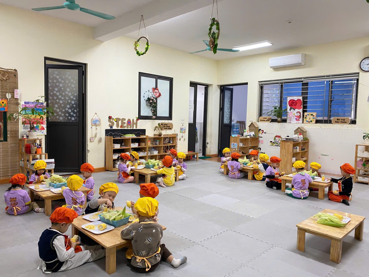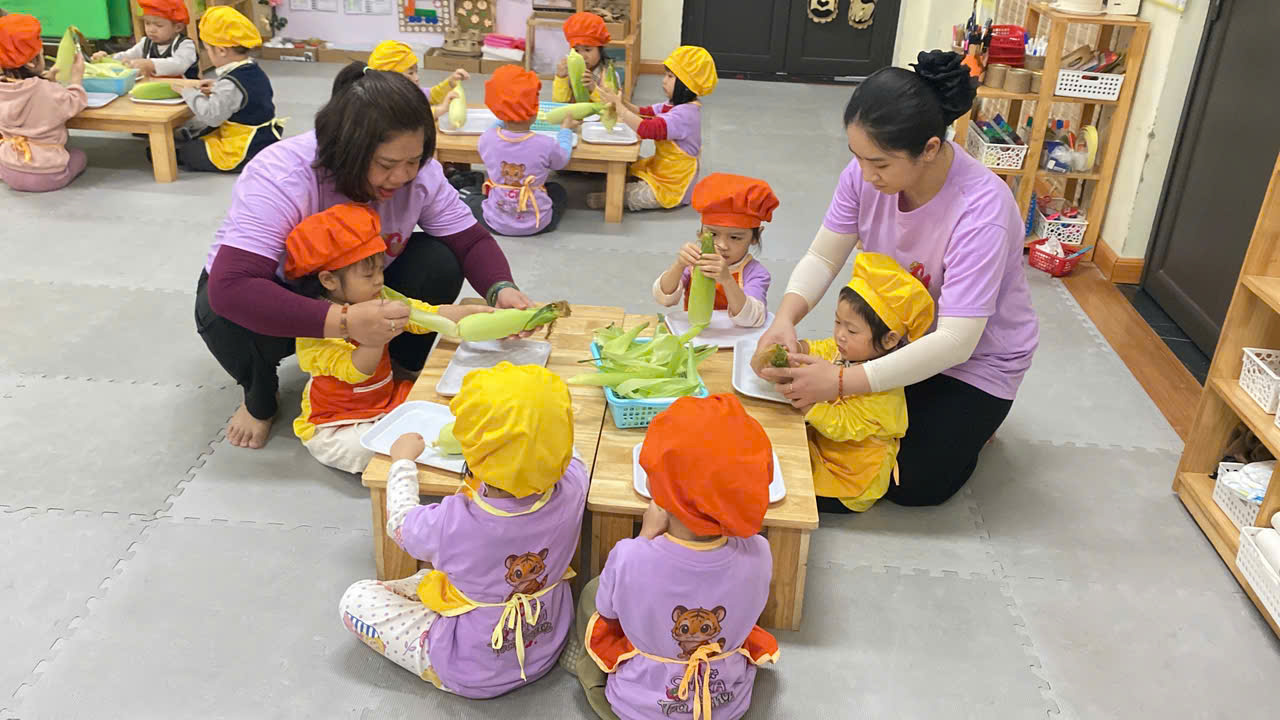 ✨Các bạn nhỏ lớp C1 rất hứng thú khi được cùng nhau khám phá về bắp ngô đấy bố mẹ ạ !