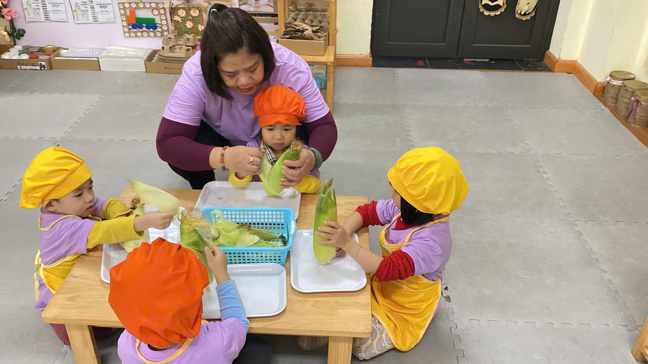 Hoạt động trải nghiệm: Kĩ năng "Tách hạt bắp ngô" của các bạn lớp MGB C1