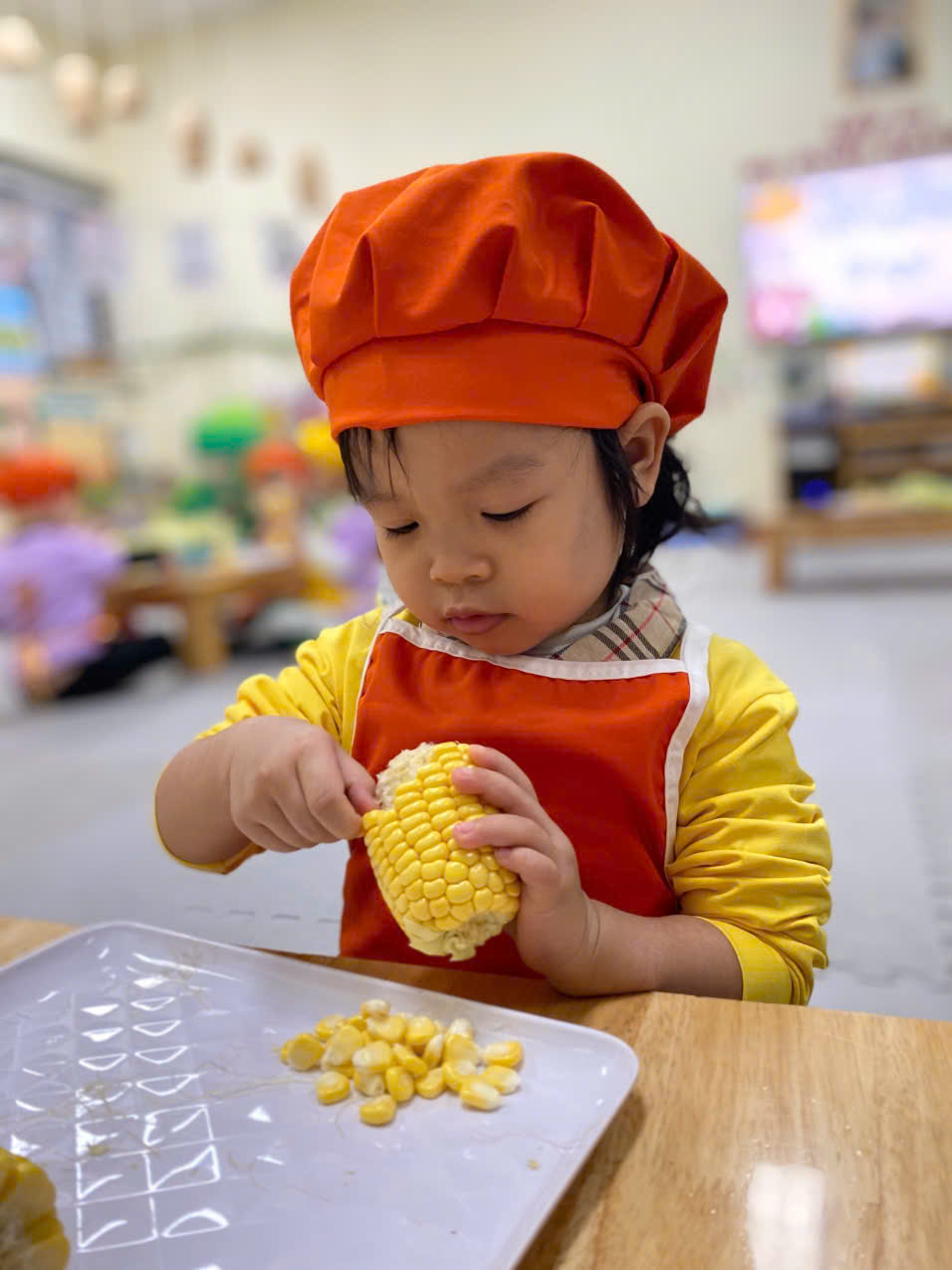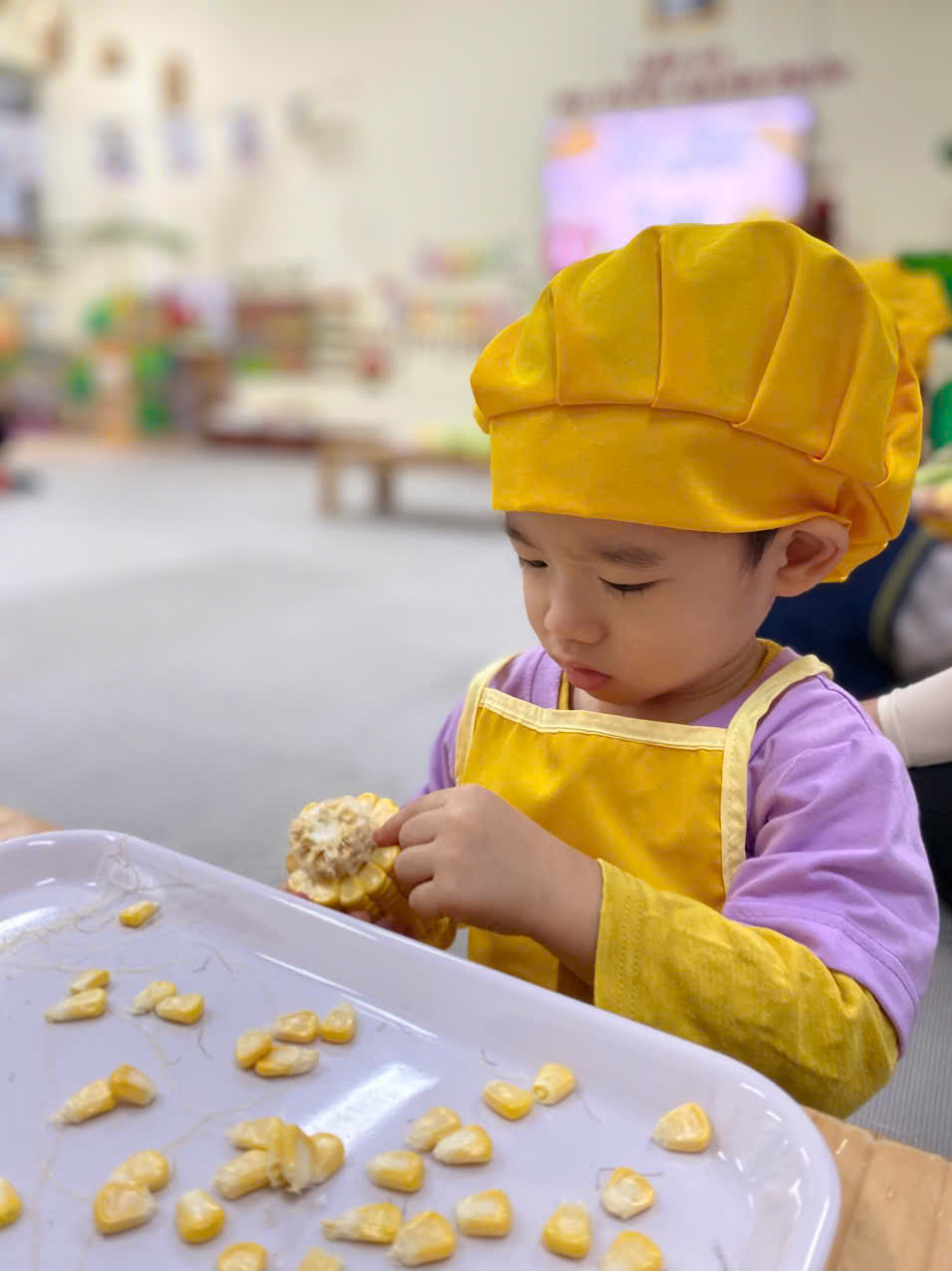 🌱Trẻ được trải nghiệm và phát triển kĩ năng khéo léo, linh hoạt qua việc tách những hạt ngô. Rèn cho trẻ kĩ năng tập trung, có tính kiên nhẫn, tỉ mỉ, sự khéo léo linh hoạt của đôi bàn tay,
