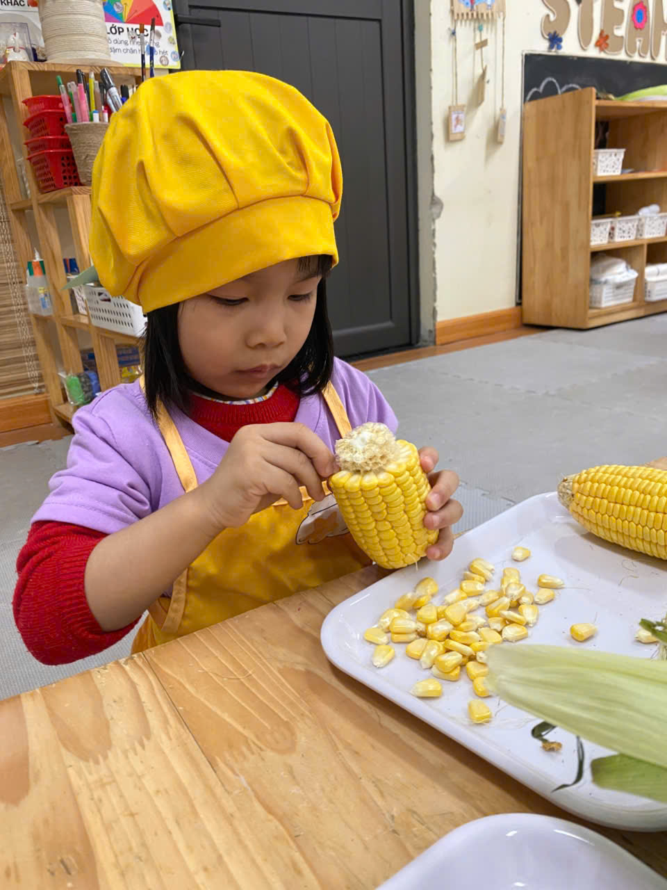 🌱Quan sát màu sắc, hình dáng của bắp ngô kích thích các giác quan trực tiếp.