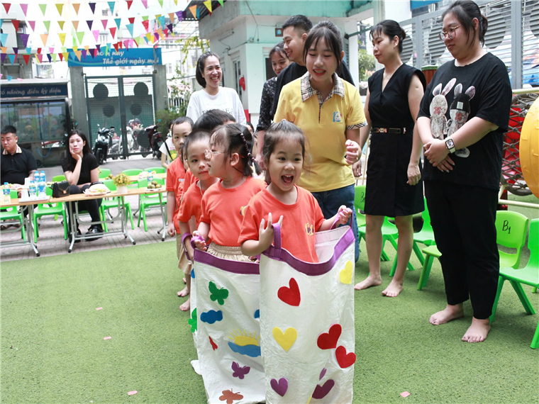 Qua ngày hội, bố mẹ sẽ thấy được những phút giây vui chơi thoải mái của các con , sự năng động , hoạt bát, thông minh, và đáng yêu của các con đã tiến bộ theo từng ngày.Và các cô luôn mong muốn sẽ nhận được sự ủng hộ nhiệt tình từ phía cha mẹ học sinh để các con có một môi trường học thú vị, ý nghĩa và phát triển toàn diện thông qua các hoạt động như trên.