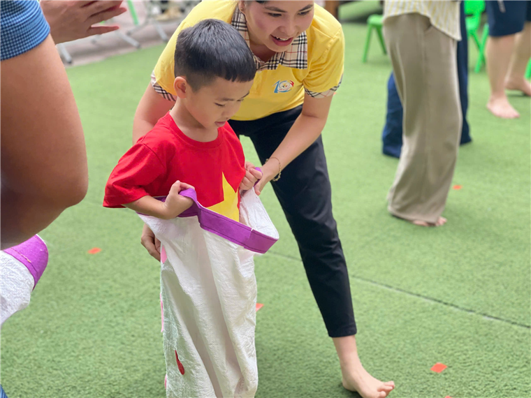 Các phụ huynh và các con lớp B1 đã cùng nhau tham gia vào nhiều trò chơi hấp dẫn như: nhảy bao bố, chuyển bóng, nổ bỏng ngô, ai khéo nhất ,chung sức… Không khí của ngày hội thật náo nhiệt và vui tươi, tiếng cười nói rộn rã vang vọng khắp sân trường. Các con cùng bố mẹ, ông bà đã rất sôi nổi cổ vũ cho nhau nhiệt tình và đặc biệt các bậc cha mẹ vô cùng hào hứng khi đồng hàng cùng con trong mọi trò chơi. Điều này đã tạo nên sức mạnh to lớn cho các con và cũng chính là để gắn kết yêu thương giữa bố mẹ và các con ngày một lớn hơn.