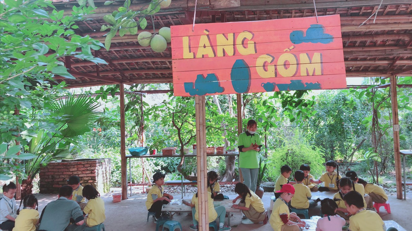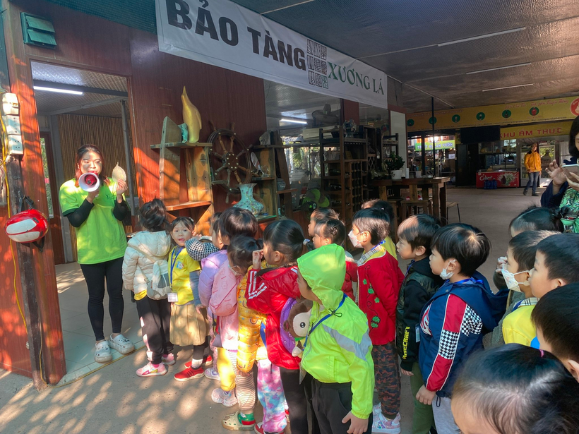Sau đó các con được tham gia rất nhiều trò chơi như: nặn bánh, làm gốm, sáng tạo tranh từ lá cây, tìm lá sắc màu trong mê cung… hay các trò chơi dân gian như: bắt vịt, nhảy sạp, ném trúng đích…