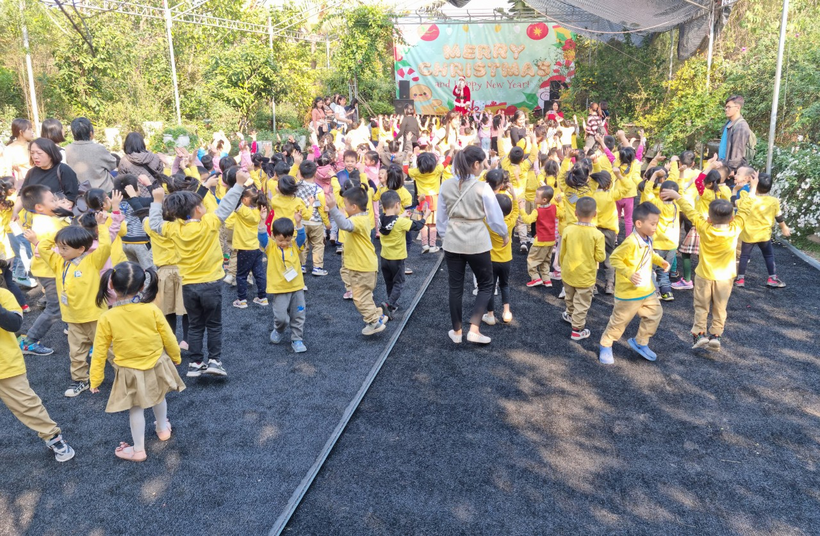 Đến giờ nghỉ trưa các con được các cô bác chăm sóc chu đáo, ăn trưa và nghỉ ngơi. Buổi chiều các con tiếp tục tham gia các hoạt động tập thể với những điệu nhảy sôi động cùng ông già noel.