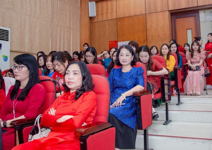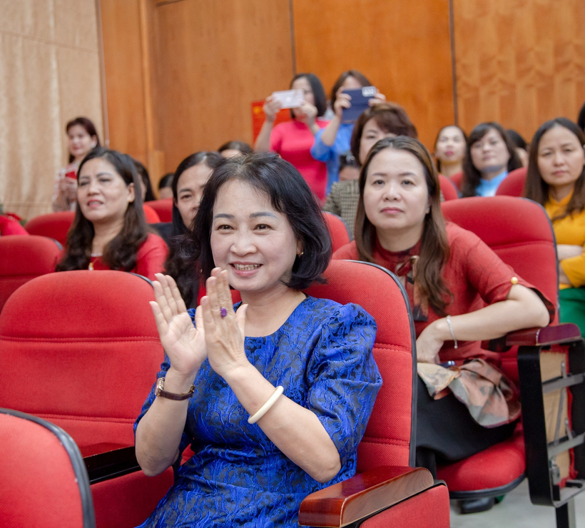 Cô Trần Thị Mai Anh ( mặc áo xanh)– Hiệu trưởng nhà trường tham dự hội nghị