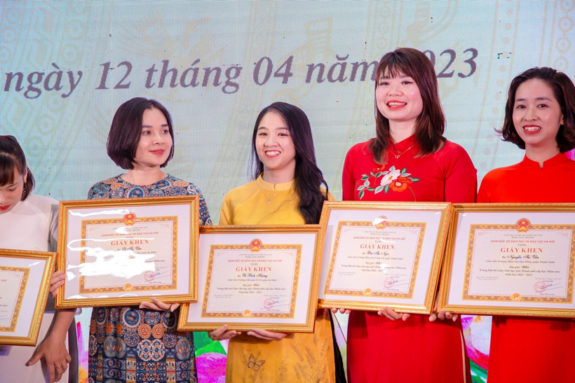 Cô giáo vũ Bích Hương được nhận Hoa và Giấy khen của SGD&ĐT Hà Nội