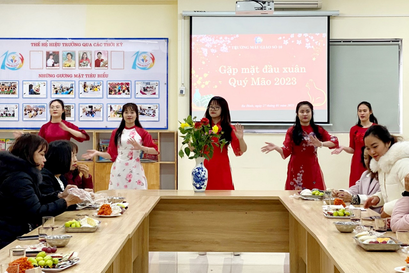Trường Mẫu giáo Số 10 tổ chức gặp mặt và chúc Tết Cán bộ, giáo viên, nhân viên đầu xuân năm mới 2023.