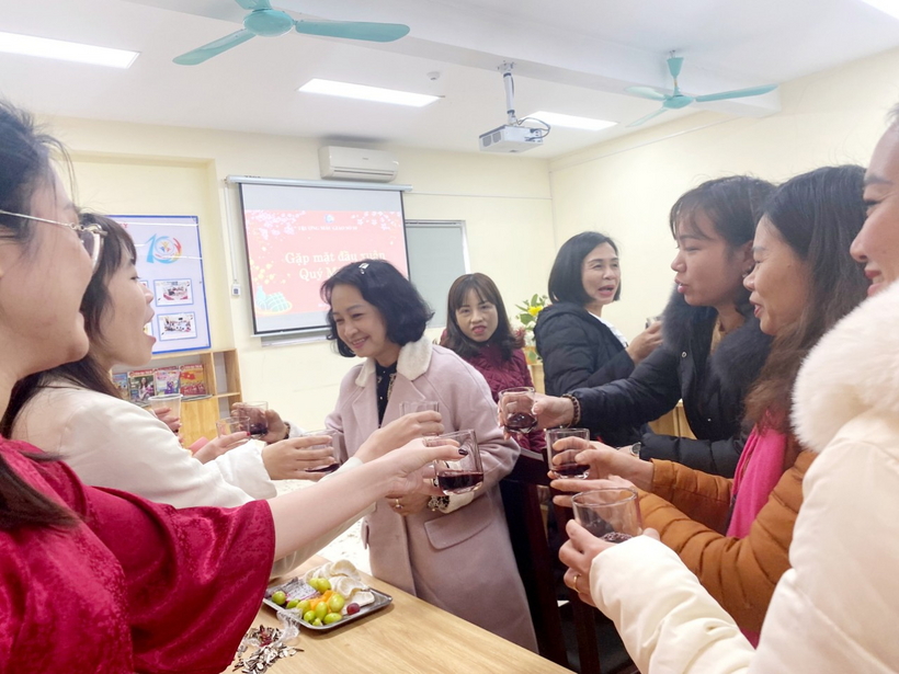 Buổi gặp mặt đã để lại những tiếng cười, những dấu ấn tốt đẹp trong mỗi thành viên của nhà trường, những ly rượu vang sóng sánh, những phong bao lì xì, những lời chúc tốt đẹp trong tiếng nhạc Happy newyear làm cho không khí đầu xuân càng thêm rộn ràng, hân hoan và phấn khởi, hạnh phúc đong đầy khi được giao thoa tại ngôi trường vừa tròn 45 tuổi.