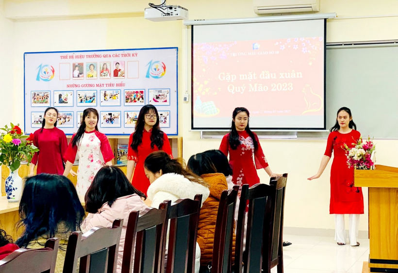 Sáng mùng 6 Tết, ngày 27/1/2023, trong không khí phấn khởi của những ngày đầu xuân năm Quý Mão, trường Mẫu giáo Số 10 đã tổ chức gặp mặt và chúc Tết CBGVNV tại phòng Hội đồng với sự tham gia của Cấp ủy, Ban giám hiệu, Ban chấp hành công đoàn, Ban chấp hành Chi đoàn và các đ/c giáo viên, nhân viên các tổ mẫu giáo, tổ nhà trẻ, tổ nuôi dưỡng và tổ văn phòng.