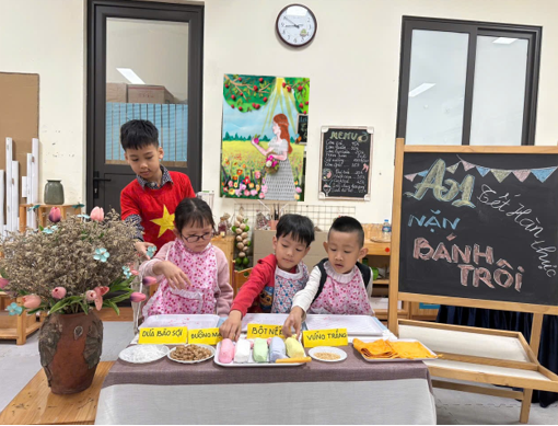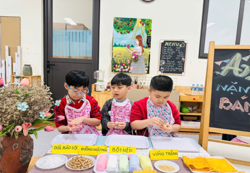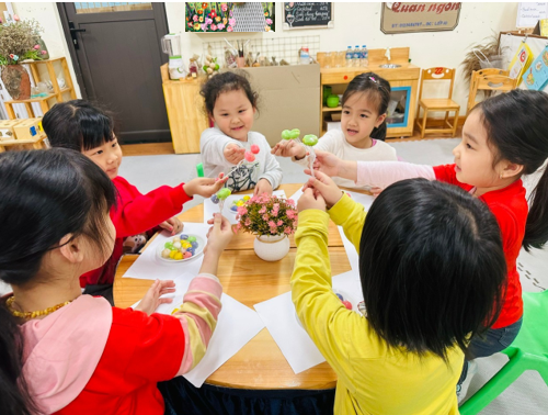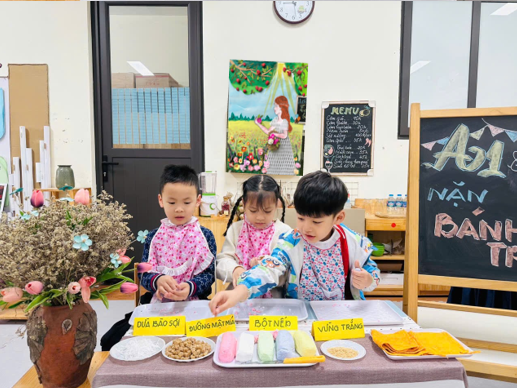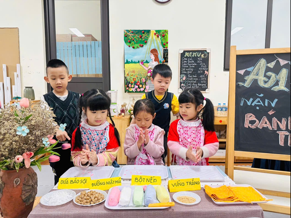Trải nghiệm nặn bánh Trôi với cô giáo và các bạn cùng lớp.