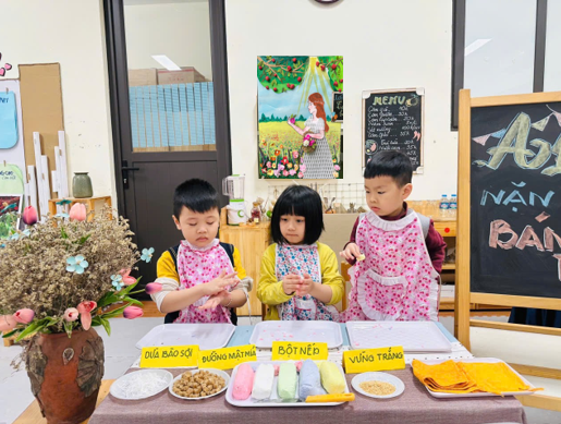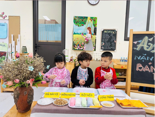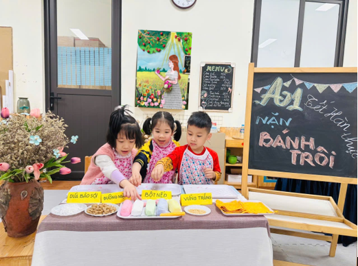 Trước tiên, các bé được cô cho tìm hiểu về nguồn gốc và ý nghĩa của ngày Tết Hàn Thực, xuất hiện chủ yếu ở Trung Quốc và Việt Nam. Tại Việt Nam, tết Hàn thực được biết đến là một ngày lễ quan trọng trong năm. Mỗi lần đến ngày này, người dân đều làm bánh trôi, bánh chay để cúng tổ tiên.