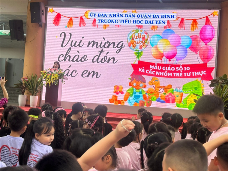 Trường mẫu giáo số 10 và các nhóm trẻ tư thục phối hợp cùng với trường tiểu học Đại Yên sẽ chuẩn bị các điều kiện cần thiết cho các cháu vào lớp 1. Sáng ngày 11/4/2025 các bé mẫu giáo lớn A1 cùng khối mẫu giáo lớn và các cô giáo, ban giám hiệu trường số 10 đến thăm quan trường tiểu học Đại Yên.