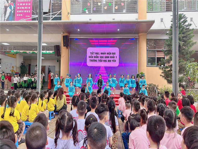 Sau đó các bé được đi thăm quan lớp học, chơi những trò chơi với màn hình tương tác và được hoạt động tại các phòng chức năng: Vẽ tranh, đọc và nghe kể chuyện, dẫn bóng và ném bóng vào rổ… Được nghe giới thiệu về bộ giáo cụ lớp 1 sắp tới sẽ được dùng. Các bé còn được nhận những món quà ý nghĩa do trường Đại Yên trao tặng