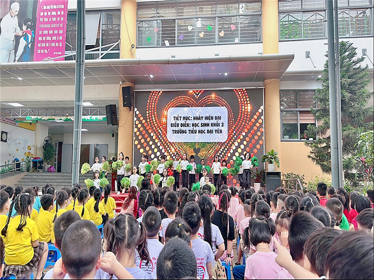 Màn giao lưu giữa các em và anh chị trường tiểu học, xem những hình ảnh giới thiệu về trường Đại Yên, nghe các cô hiệu trưởng của 2 trường phát biểu chào mừng.