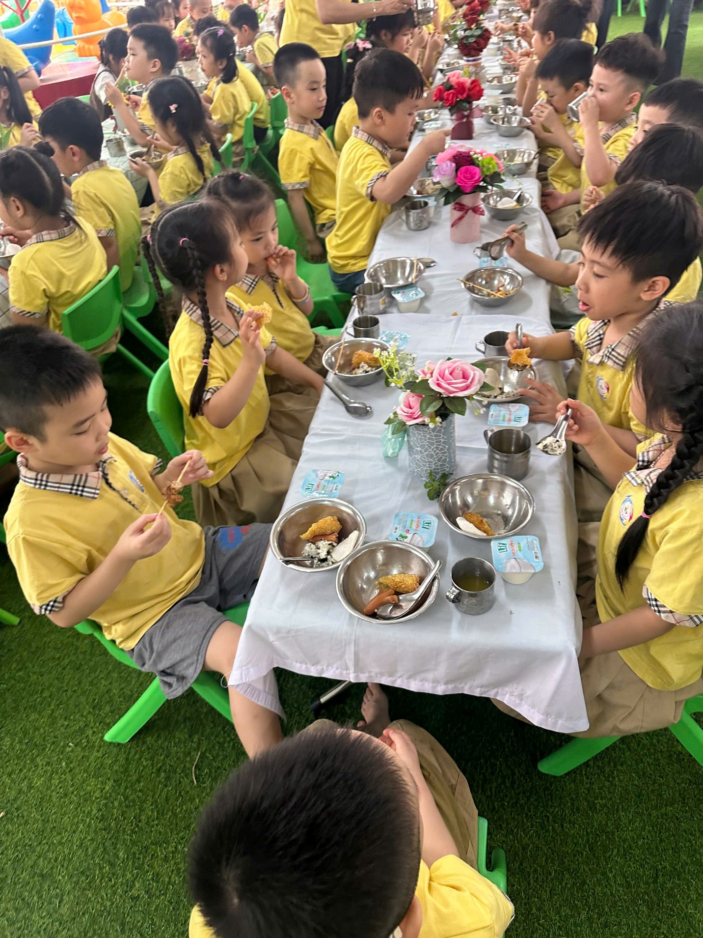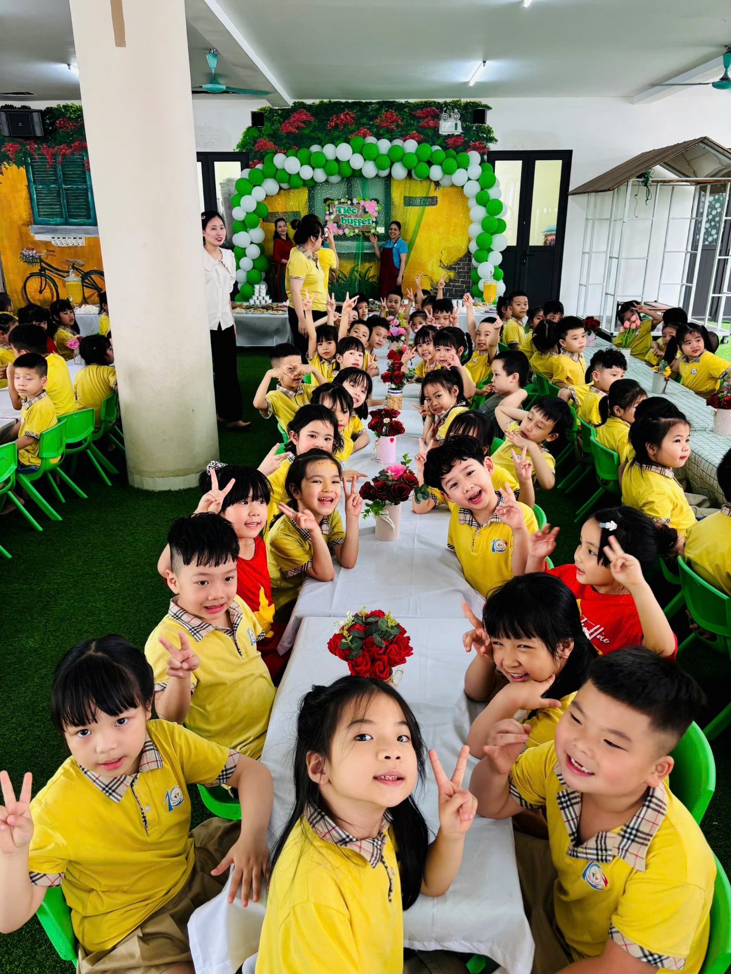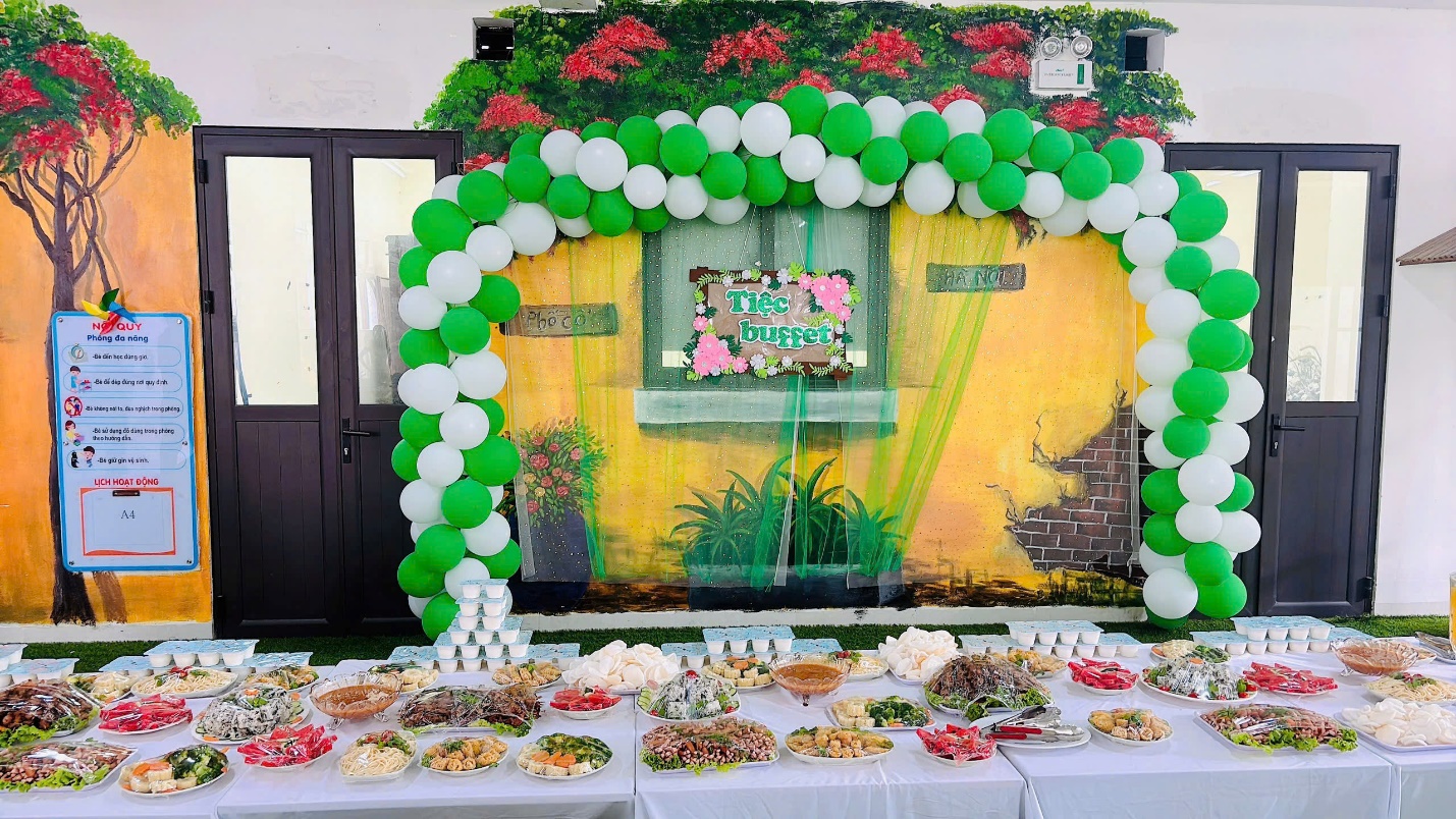 Để kết thúc một ngày tổng kết thật trọn vẹn, chúng ta sẽ cùng nhau thưởng thức bữa tiệc buffet ngoài trời ấm cúng. Đây là cơ hội để các bé và các cô giáo cùng nhau giao lưu, trò chuyện, tạo thêm những kỷ niệm đẹp và thắt chặt tình cảm. Những món ăn ngon, không gian thoáng đãng cùng tiếng cười giòn tan sẽ là mảnh ghép hoàn hảo cho một ngày hội ý nghĩa, đánh dấu sự kết thúc của một năm học thành công và mở ra một mùa hè đầy hứa hẹn.