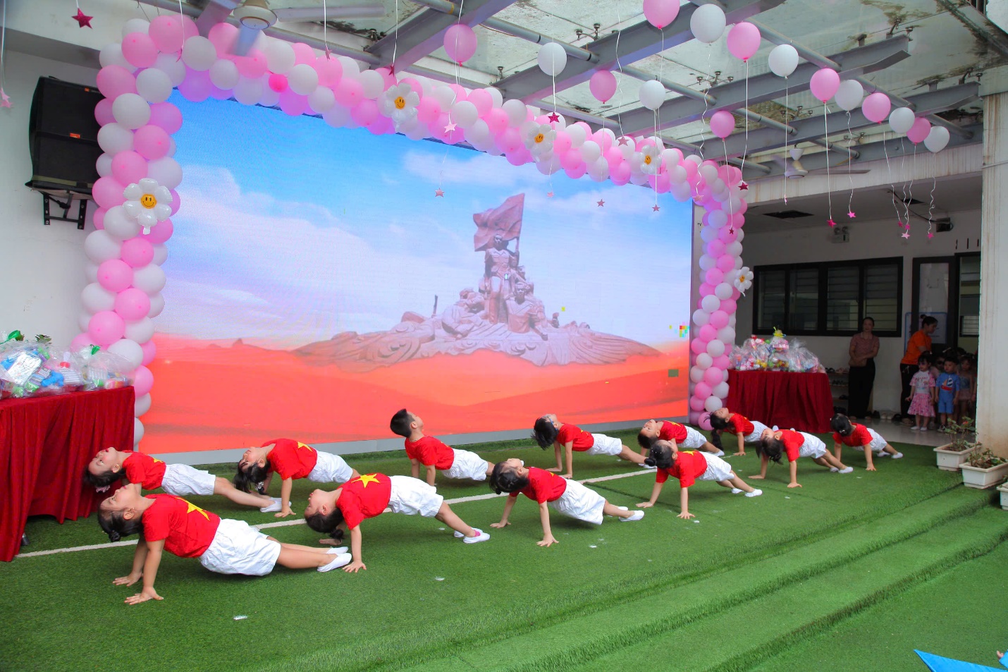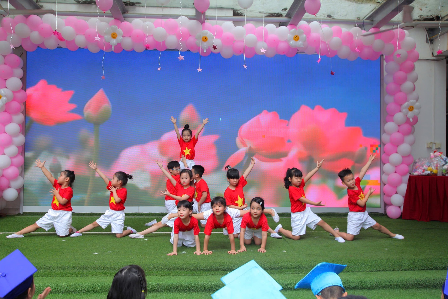 Hình ảnh các con biểu diễn văn nghệ trong buổi lễ