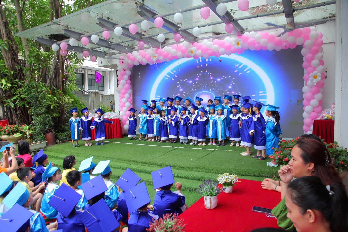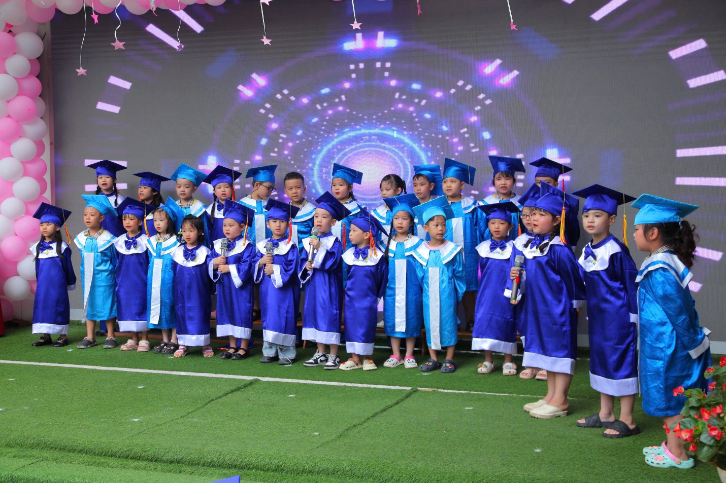 Khoảnh khắc xúc động nhất trong buổi lễ có lẽ là giây phút chia tay các bé mẫu giáo lớn chuẩn bị bước vào lớp một. Nhìn các con khoác lên mình chiếc áo cử nhân nhỏ xinh, chúng tôi không khỏi bồi hồi xen lẫn tự hào. Các con đã lớn khôn hơn rất nhiều, không chỉ về thể chất mà còn về cả trí tuệ và tình cảm. Những năm tháng cùng nhau trải qua của cô và trò lớp Mẫu Giáo Lớn A3 sẽ là hành trang quý giá, là nền tảng vững chắc để các con tự tin khám phá thế giới rộng lớn phía trước. Chúc các con luôn mạnh khỏe, ngoan ngoãn và đạt được nhiều thành công trên chặng đường học tập sắp tới. Các cô giáo lớp Mẫu Giáo lớn A3sẽ luôn chào đón các con trở về bất cứ lúc nào!
