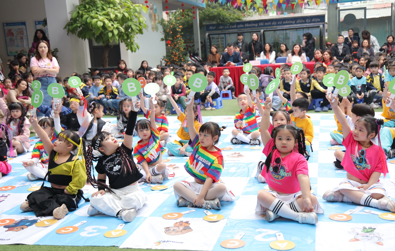 Hội thi gồm 2 phần : Mở đầu là phần thi “ Bé Vui Khỏe “ với phần đồng diễn Aerobic các con trong trang phục rực rỡ, đã cháy hết mình trong hội thi. Bài dự thi của các con gồm nhiều động tác khó, đòi hỏi kĩ thuật cao : Con chuồn chuồn, Cây cung, Bánh xe, Các tư thế xoạc chân ngang – dọc – ép người, chuyển đổi đội hình linh hoạt. Để thực hiện được bài thi các con đã nỗ lực luyện tập trong suốt một tuần, để hôm nay có thể bùng cháy hết mình trên sân khấu. Phần hai của hội thi có tên là “ Bé Chăm Ngoan “ diễn ra rất gay cấn với sự làm việc rất công tâm của tổ trọng tài. Các con lớp A3 đã rất xuất sắc thể hiện sự tập trung, nhanh nhẹn khi giơ đáp án.