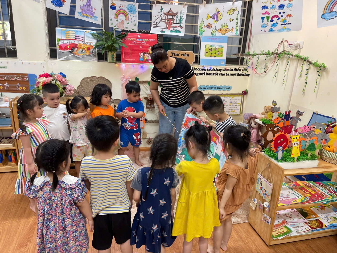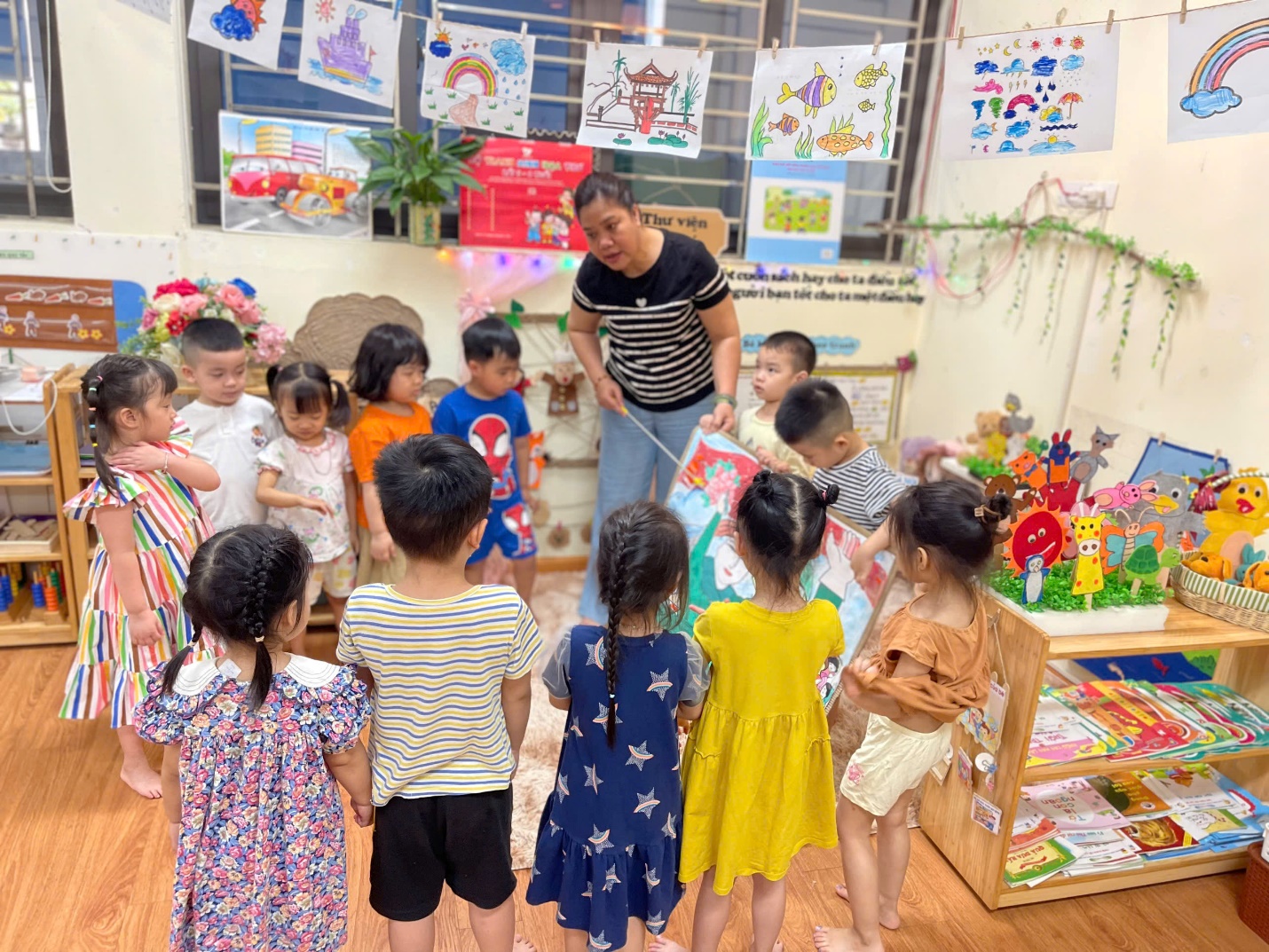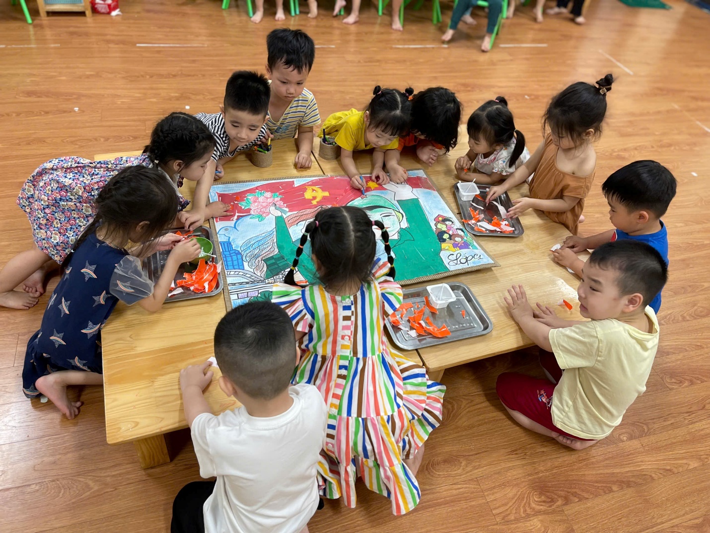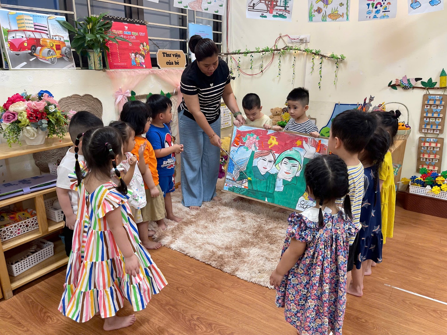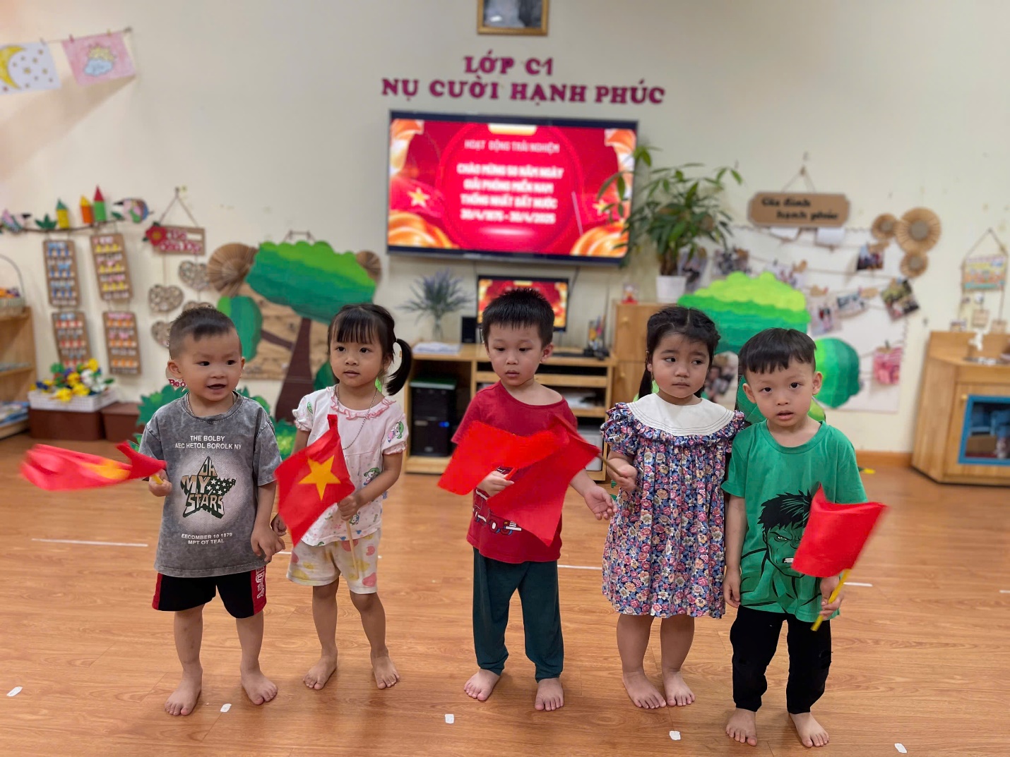 Chào mừng Ngày Giải phóng miền Nam 30/4 và 1/5, các bé đã được tham gia nhiều hoạt động ý nghĩa và vui nhộn. Với sự chuẩn bị chu đáo, nhiệt tình từ các cô giáo và sự đồng hành của các bậc phụ huynh. Các bé cùng cô giáo dán, trang trí tranh cổ động về Đảng, chú bộ đội , xe tăng và được nghe các cô kể chuyện về ngày thống nhất đất nước. Ngoài ra, các bé còn được tham gia múa hát những bài hát thiếu nhi vui tươi như: “Như có Bác Hồ trong ngày vui đại thắng”, “Em yêu Tổ quốc Việt Nam”. Thông qua các hoạt động chào mừng kỷ niệm 50 năm ngày giải phóng miền Nam, không chỉ mang lại niềm vui mà còn giúp các con hiểu rằng: chính nhờ sự hy sinh, dũng cảm của các cô chú bộ đội ngày xưa mà hôm nay các bé mới được sống trong hoà bình, ấm no.