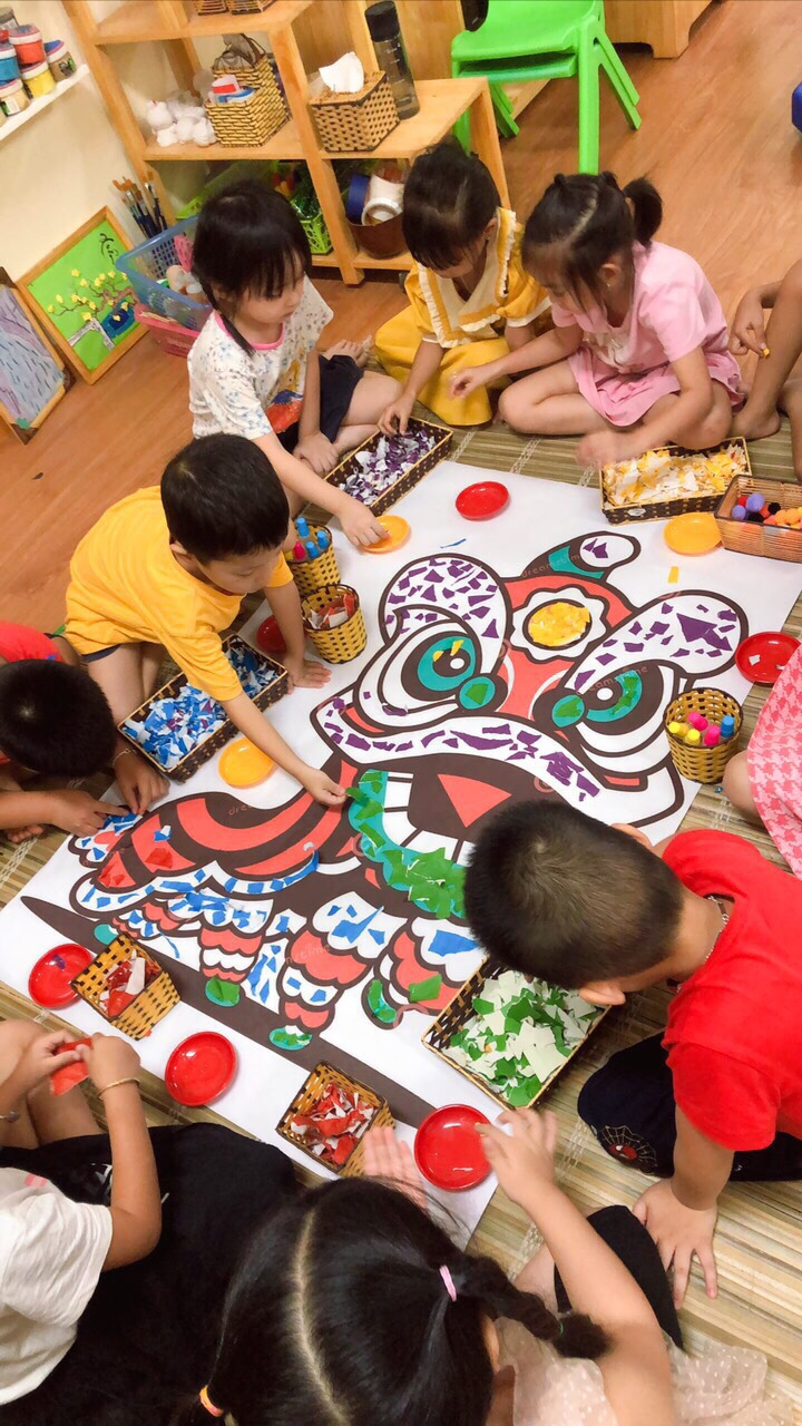 Các bạn lớp A4 làm tranh xé dán về sư tử