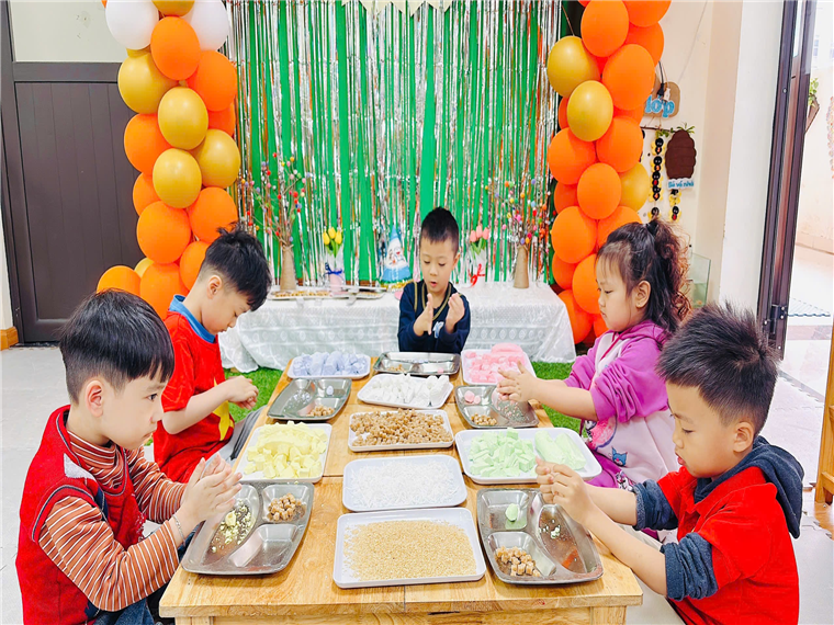 Tết hàn thực hay còn gọi là Tết bánh trôi bánh chay được tổ chức vào ngày mùng 3.3 âm lịch hàng năm. Các bạn nhỏ ở Lớp A2 đã có một buổi trải nghiệm vô cùng thú vị với hoạt động “Bé làm bánh trôi ngũ sắc” Dưới sự hướng dẫn của các cô giáo, các bé đã được tự tay nặn những viên bánh tròn xinh và sáng tạo nhiều màu sắc đẹp mắt. Không chỉ rèn luyện sự khéo léo, tỉ mỉ, hoạt động này còn giúp các bé hiểu thêm về Tết Hàn Thực – một nét đẹp truyền thống của dân tộc Việt Nam. Thành quả sau một buổi trải nghiệm vô cũng thích thú và tuyệt vời là các bé đã có được những hộp bánh trôi ngũ sắc vô cùng xinh yêu và ngon miệng. Những viên bánh đầy sắc màu là sự kết hợp của bột bánh và màu xanh của lá dứa, màu vàng của nghệ, màu đỏ của củ dền, màu tím của hoa đậu biếc…