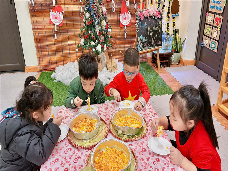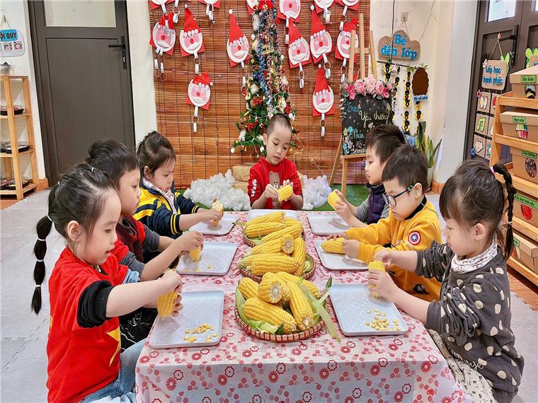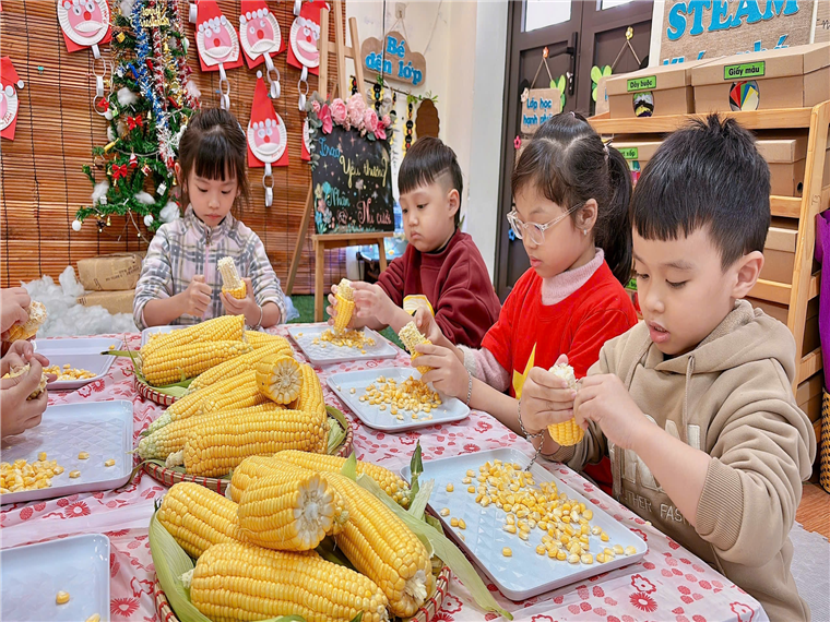Hoạt động trải nghiệm “Tách hạt ngô và làm Ngô nướng phô mai” là một hoạt động các bạn nhỏ lớp MGL A2 rất yêu thích. Hạt ngô giòn ngọt kết hợp cùng lớp phô mai tan chảy thơm lừng, béo ngậy, vô cùng hấp dẫn. Những ngày thời tiết se lạnh mà có được một đĩa ngô phô mai đút lò nóng hổi, thơm nức mũi để thưởng thức thì còn gì bằng đúng không ạ? Các con tự tay say mê tách hạt ngô và hào hứng khi được thưởng thức Ngô nướng phô-mai do chính tay mình làm ra. Bạn nào cũng mê mẩn, thích thú.