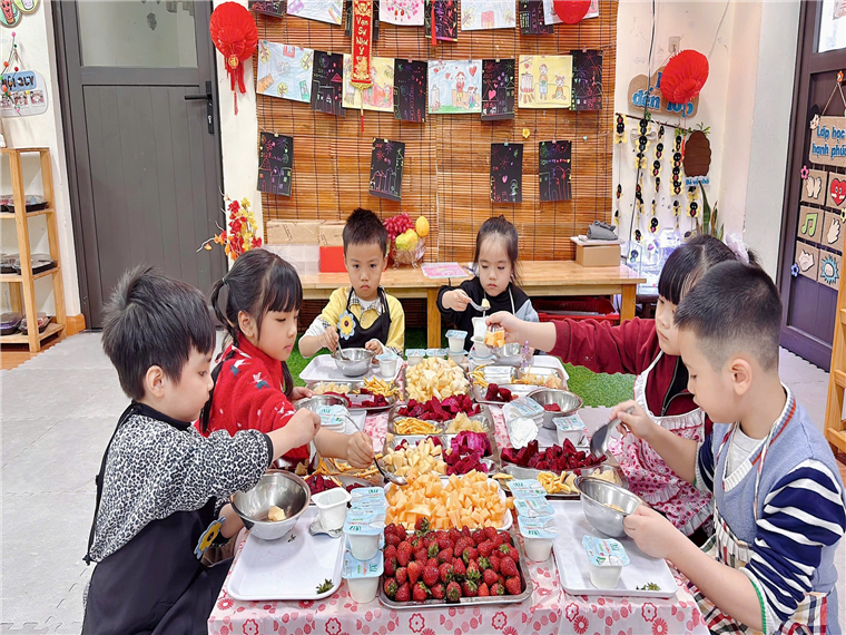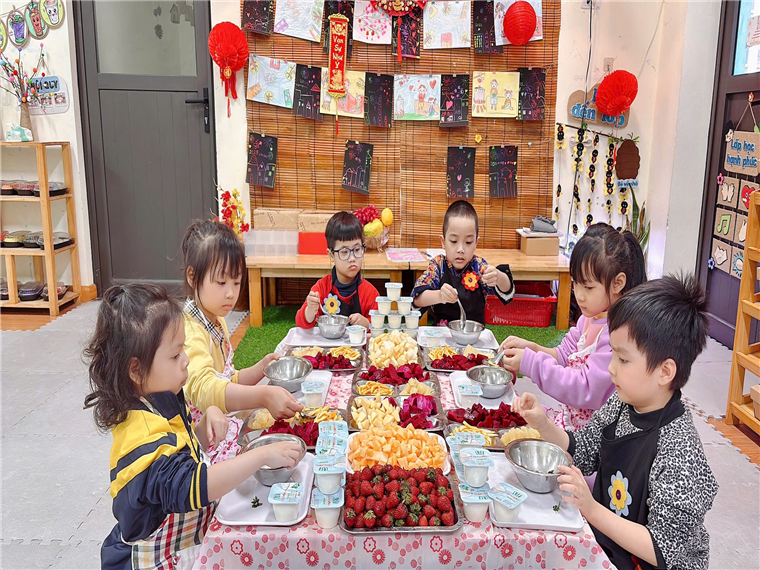 Thời tiết đang chuyển mùa, vào thời tiết này các bố mẹ hãy cho các bé ăn nhiều trái cây để bổ sung vitamin giúp cơ thể khỏe mạnh, không bị ốm nhé! Lớp Mẫu giáo lớn A2 đã tổ chức hoạt động trải nghiệm làm “Hoa quả dầm sữa chua”. Đây là một món ăn bổ sung các dưỡng chất đầy đủ cho các con. Các bạn nhỏ đã có một buổi trải nghiệm thật vui và bổ ích với hoạt động “Bé làm hoa quả dầm sữa chua”. Với nguyên liệu đơn giản gồm sữa chua, xoài, táo, thanh long, lê, dâu Tây, mít ... các con đã tự tay chế biến một món ăn ngon lành, bổ dưỡng. Các con không chỉ được học cách chuẩn bị nguyên liệu, trộn và trang trí món ăn mà còn hiểu thêm về lợi ích của trái cây và sữa chua đối với sức khỏe. Bạn nào cũng thích thú và hào hứng thưởng thức thành quả của mình! Mời ba mẹ cùng xem lại những khoảnh khắc đáng yêu của các con nhé!