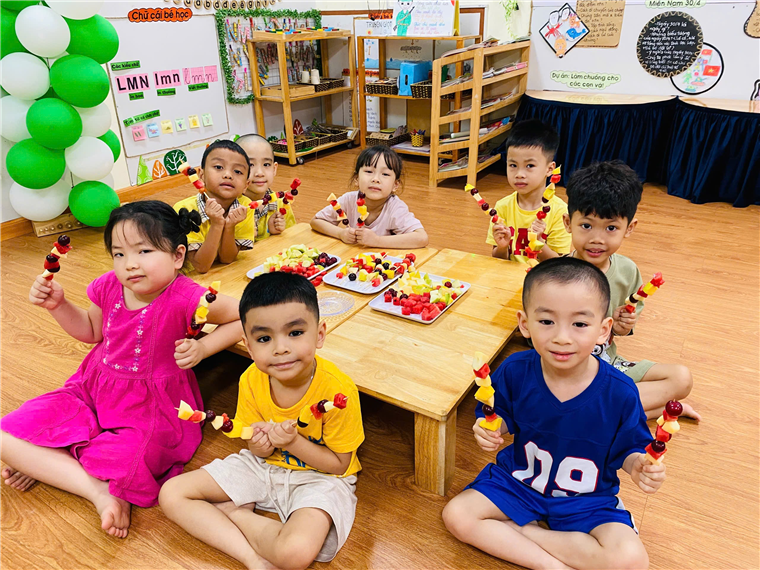 Giải nhiệt ngày hè với món “Hoa quả xiên” cùng các bé lớp MGL A5 trường Mẫu Giáo Số 10