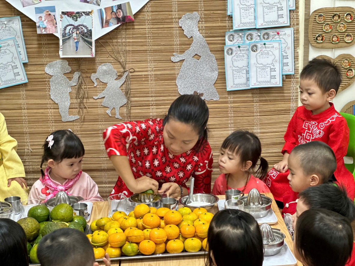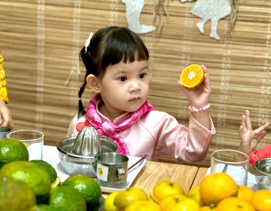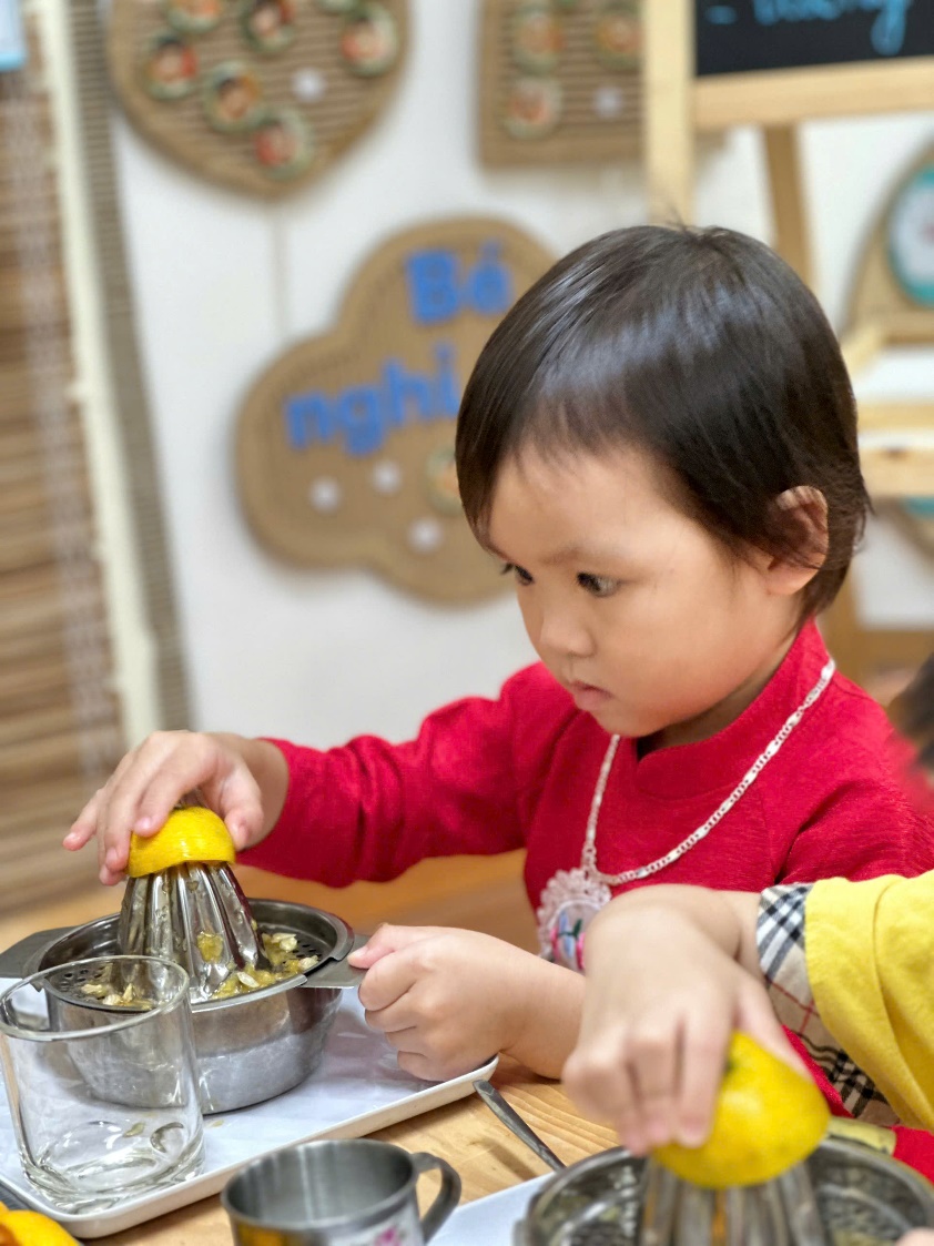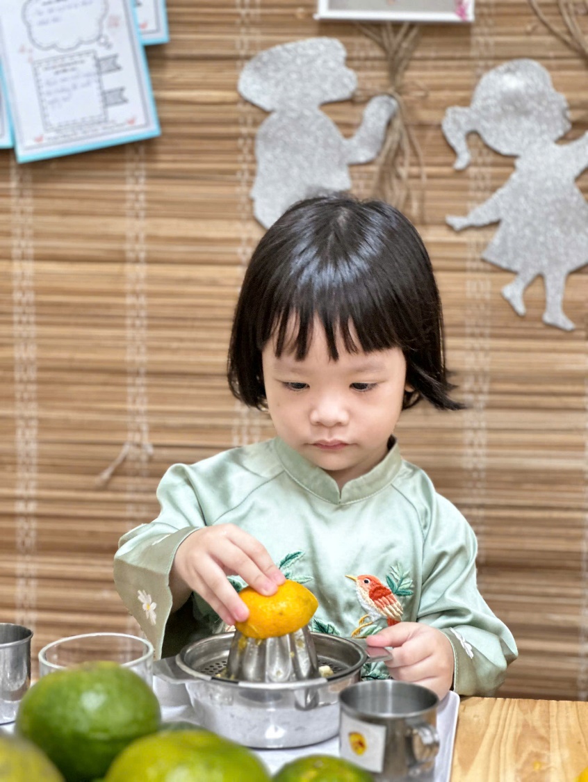 Hoạt động trải nghiệm: Bé tập làm nội trợ: “Vắt nước cam” của các bé lớp C3