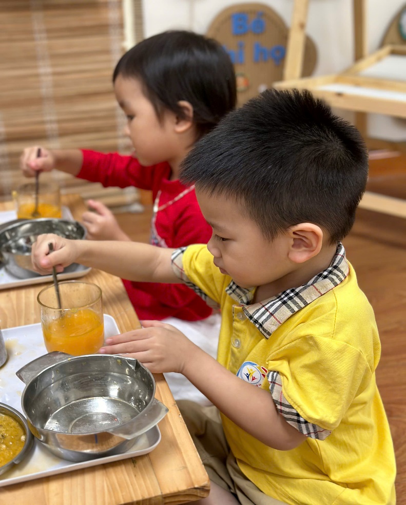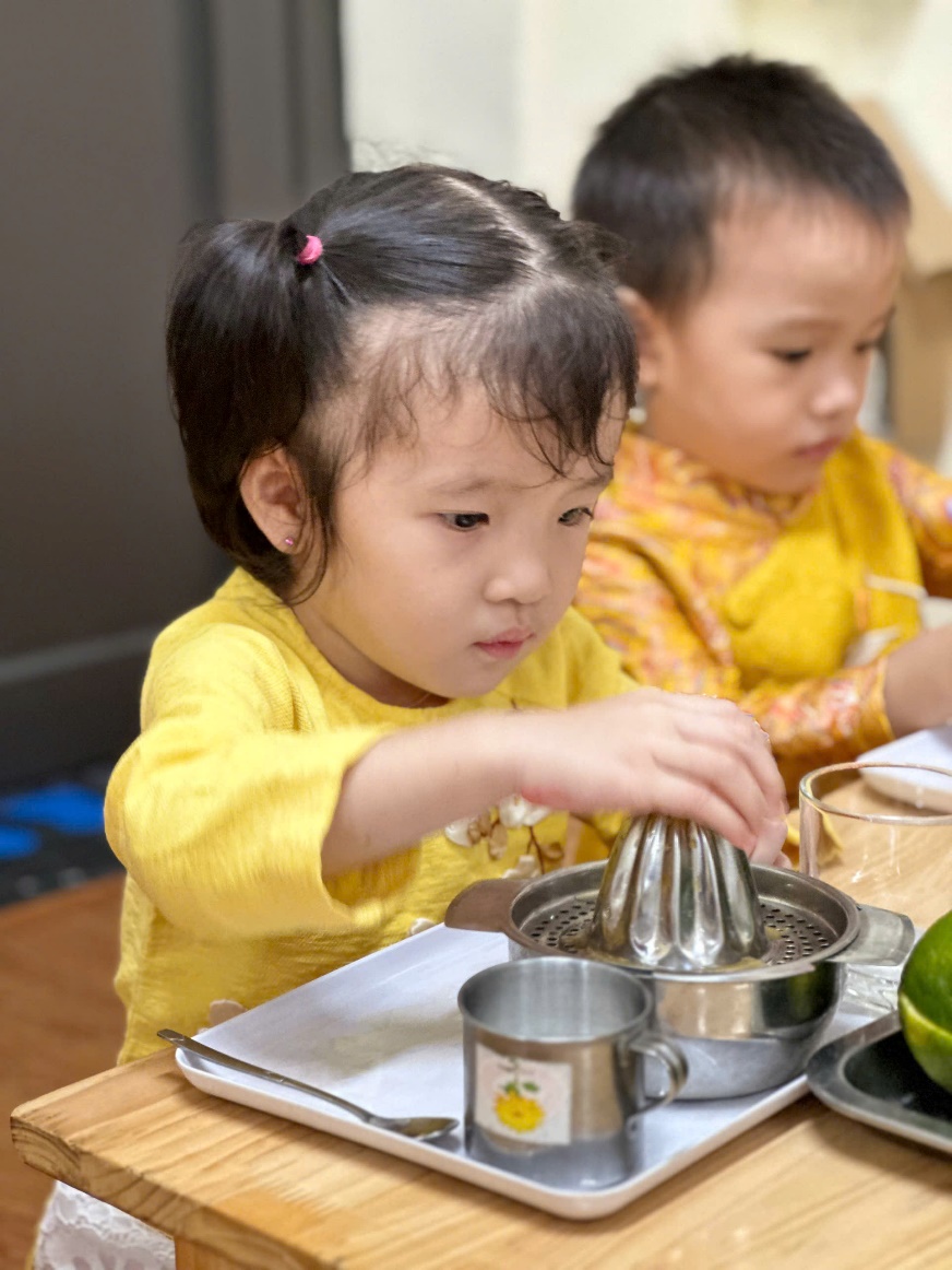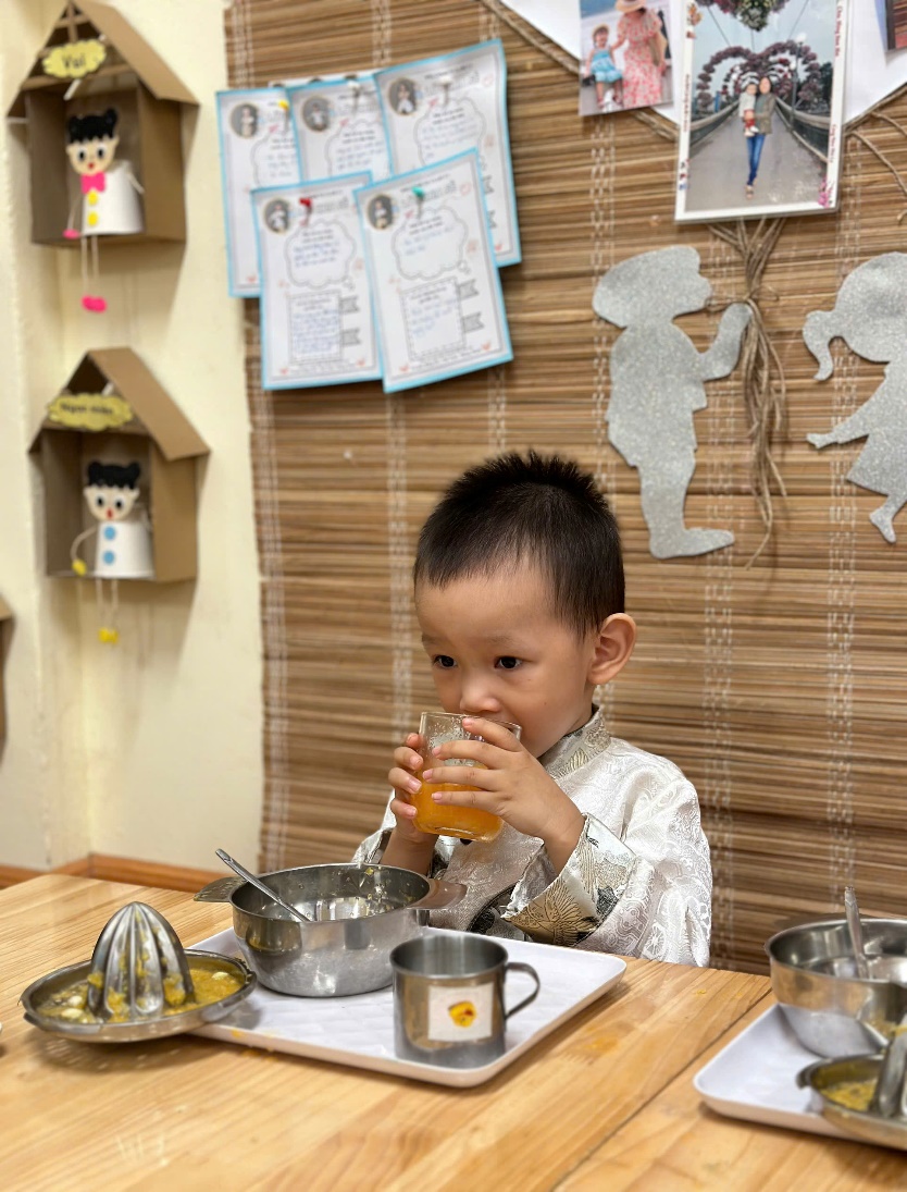 Hoạt động trải nghiệm: Bé tập làm nội trợ: “Vắt nước cam” của các bé lớp C3
