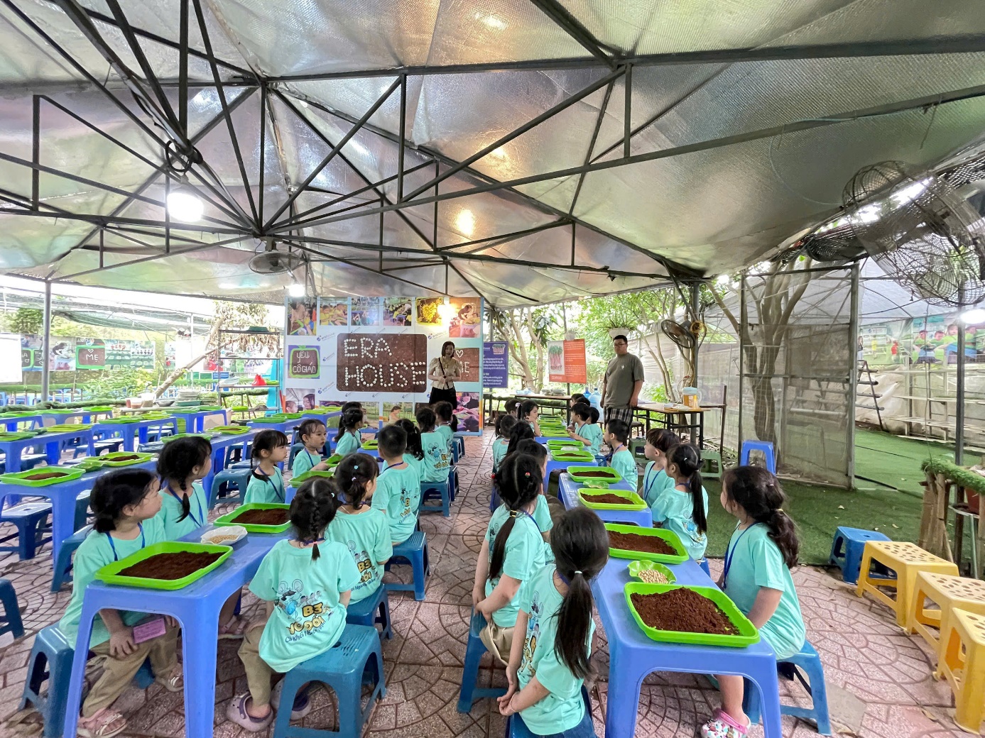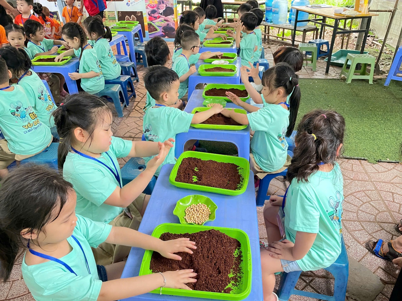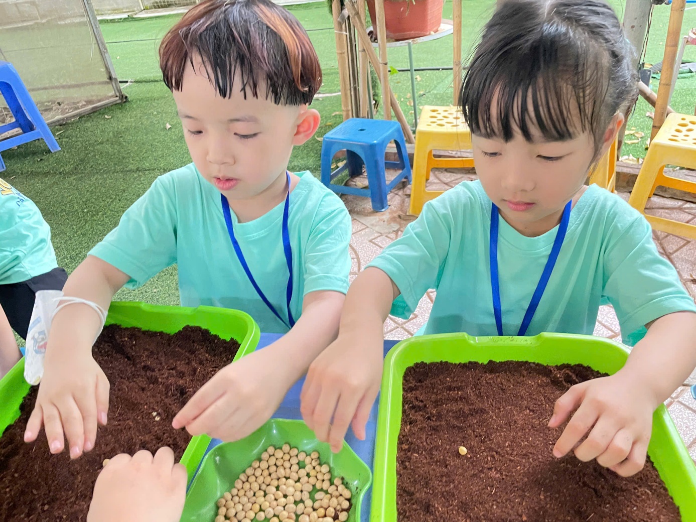 Ảnh: Các con được trồng rau mầm.