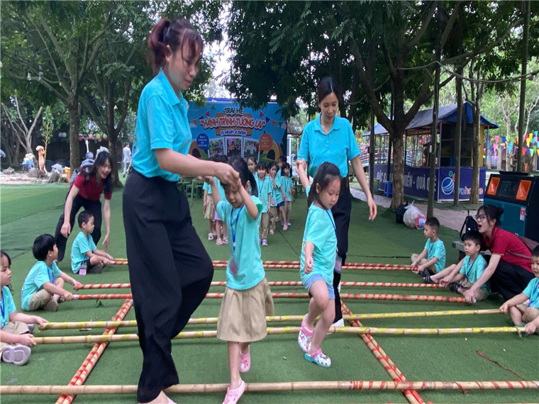 Ảnh: Các con chơi các trò chơi dân gian.