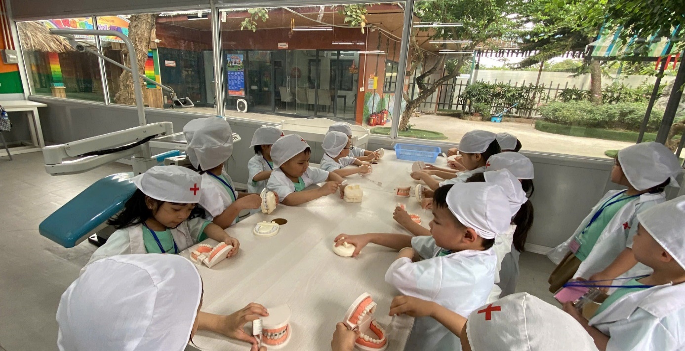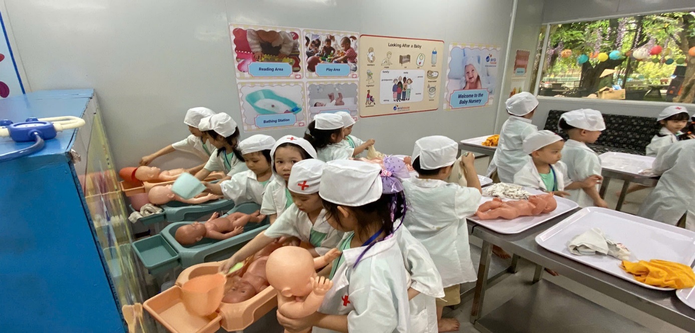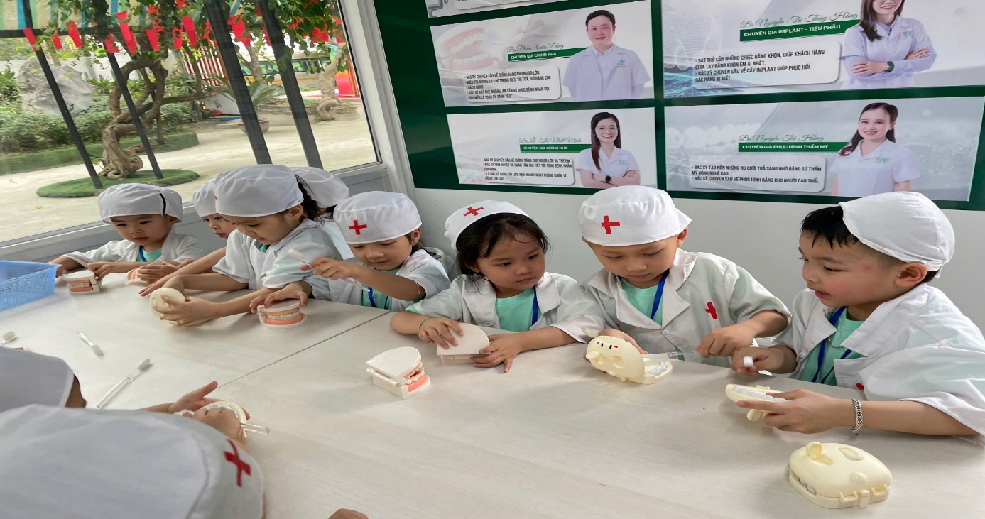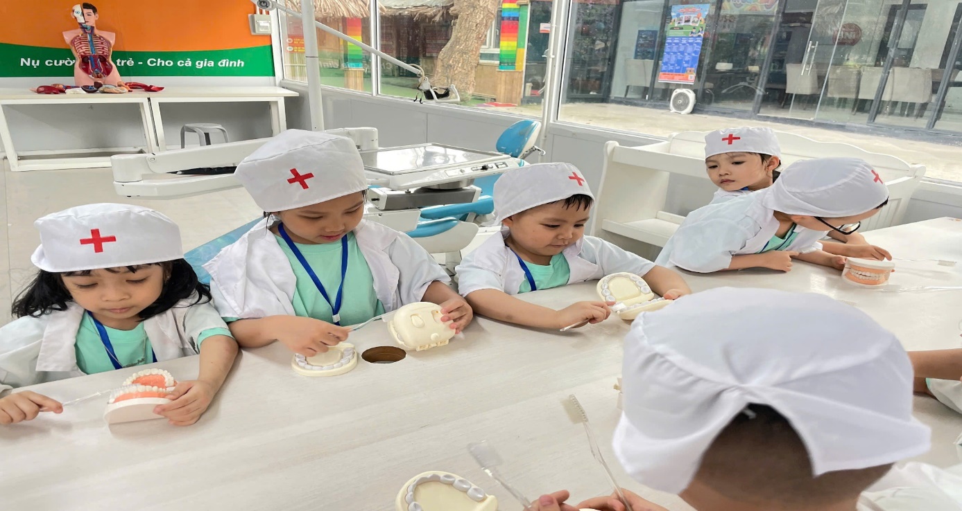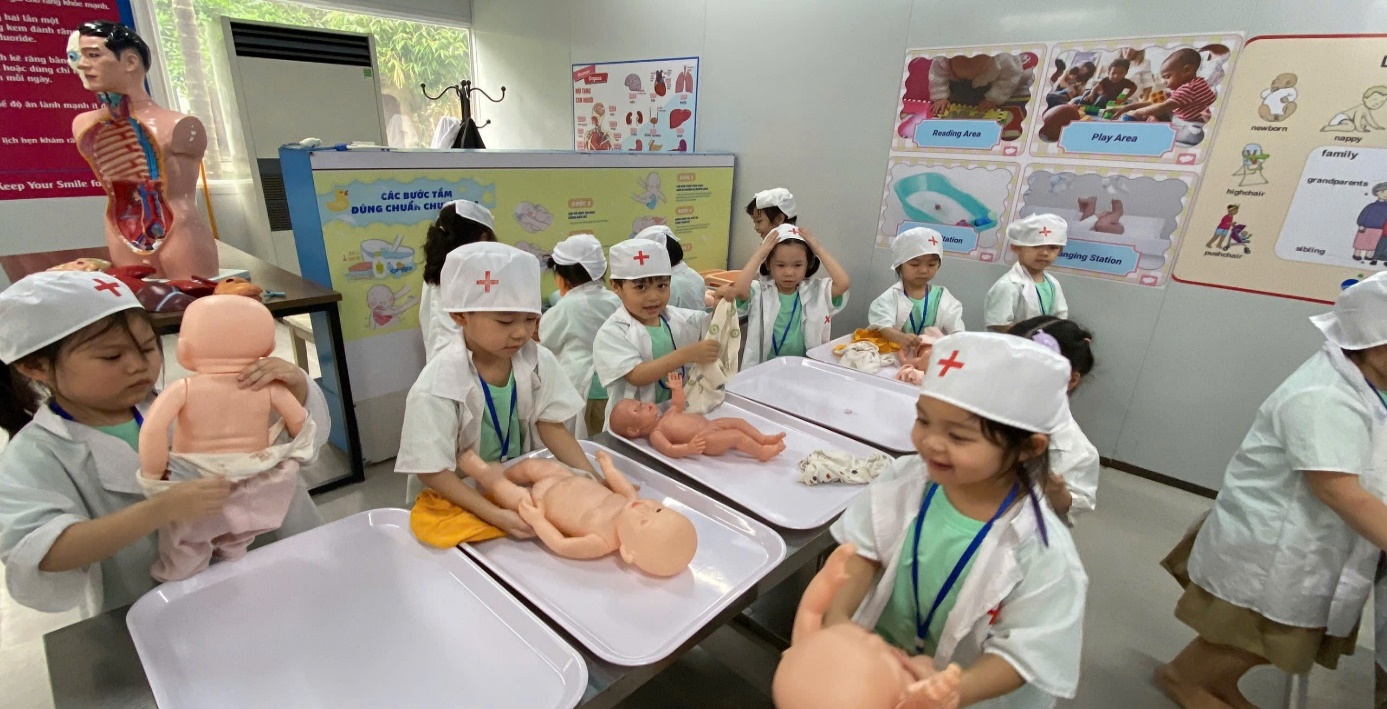 Ảnh: Các con đóng vai bác sĩ.