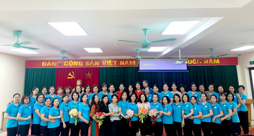 Đồng chí Trần Thị Mai Anh đã trao Quyết định bổ nhiệm và gửi những bó hoa tươi thắm tới 02 đồng chí Phạm Thị Phương và đồng chí Dương Thu Giang
