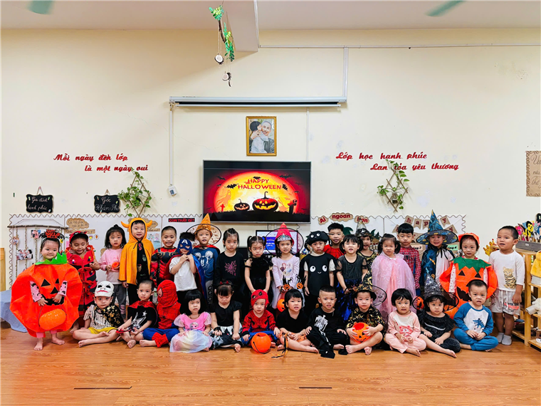 Ảnh của các con lớp C2 diện trang phục Halloween.