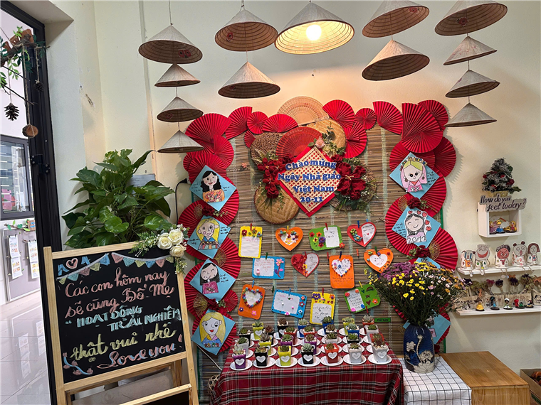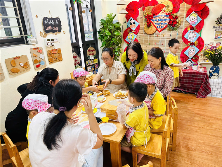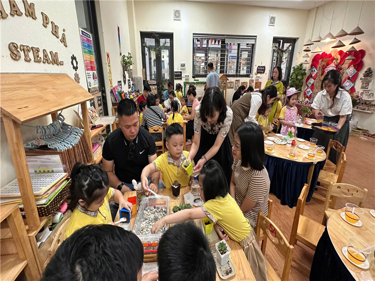 Các con đã vô cùng háo hức và hạnh phúc khi được bố mẹ đến cùng trải nghiệm. Các hoạt động được diễn ra vô cùng sôi nổi, đặc biệt có sự tương tác giữa con và bố mẹ trong hoạt động đã tăng thêm phần thú vị. Các con được chia về các nhóm và trải nghiệm làm những hoạt động như: Làm bánh mì phết bơ, bày bánh kẹo, trang trí thiệp, trồng cây sen đá, vắt nước cam, bày hoa quả, trang trí váy. Dưới sự chuẩn bị và hướng dẫn của các cô giáo, bố mẹ và các con đã rất vui vẻ tham gia cùng nhau trải nghiệm các hoạt động. Các cô tin chắc rằng đây sẽ là kỉ niệm đáng nhớ không những của các cô giáo mà còn là những kỉ niệm đáng nhớ của bố mẹ và các con.