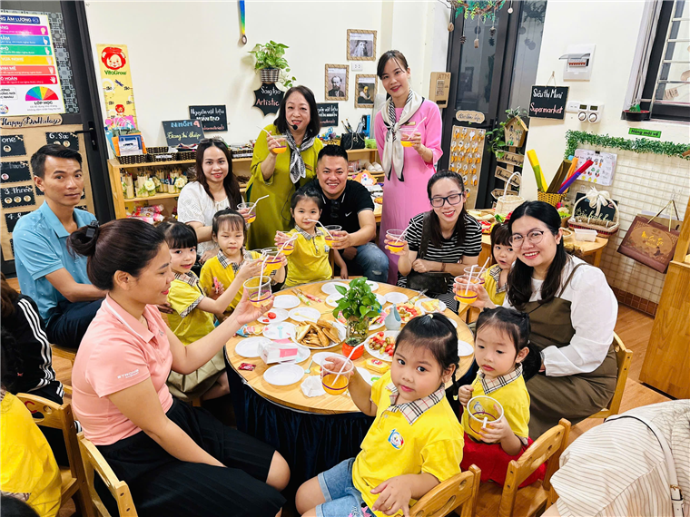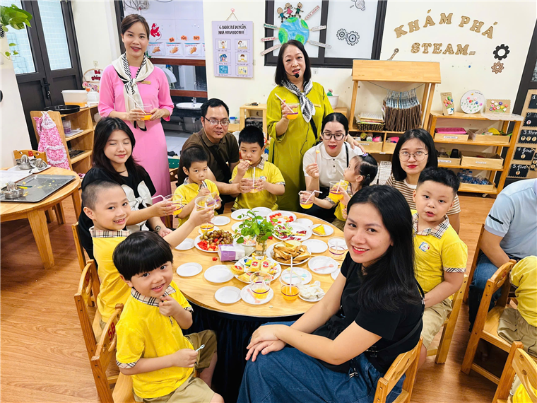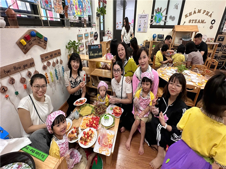 Bố mẹ và các con cùng bày bàn tiệc chia sẻ những sản phẩm của nhóm mình ạ!