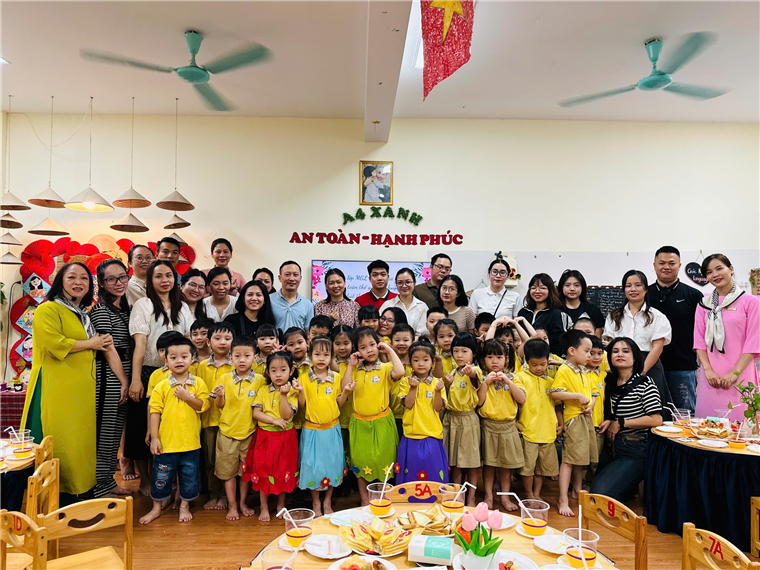 Hình ảnh ban giám hiệu, ban phụ huynh trường cùng cô giáo, phụ huynh và các con học sinh lớp MGL A4.