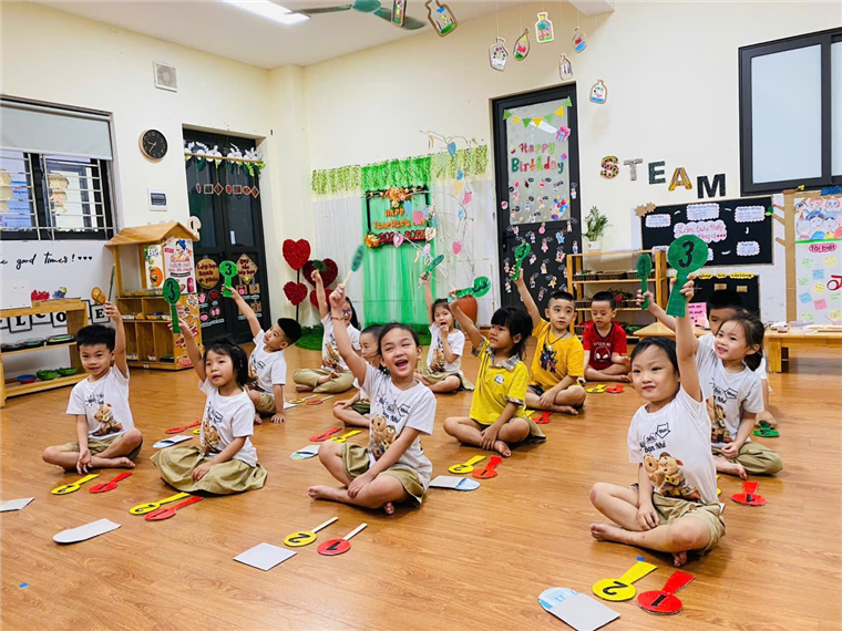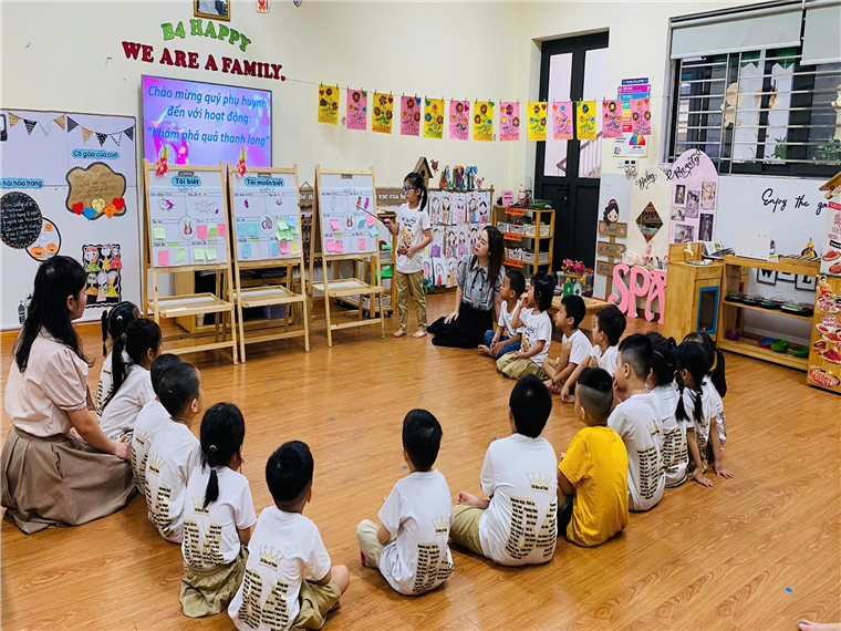 Các bé tự tin thuyết trình về kết quả của nhóm mình