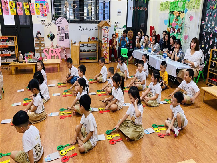BGH – Ban PH trường và PH lớp hân hoan khi dự giờ hoạt động của các bé