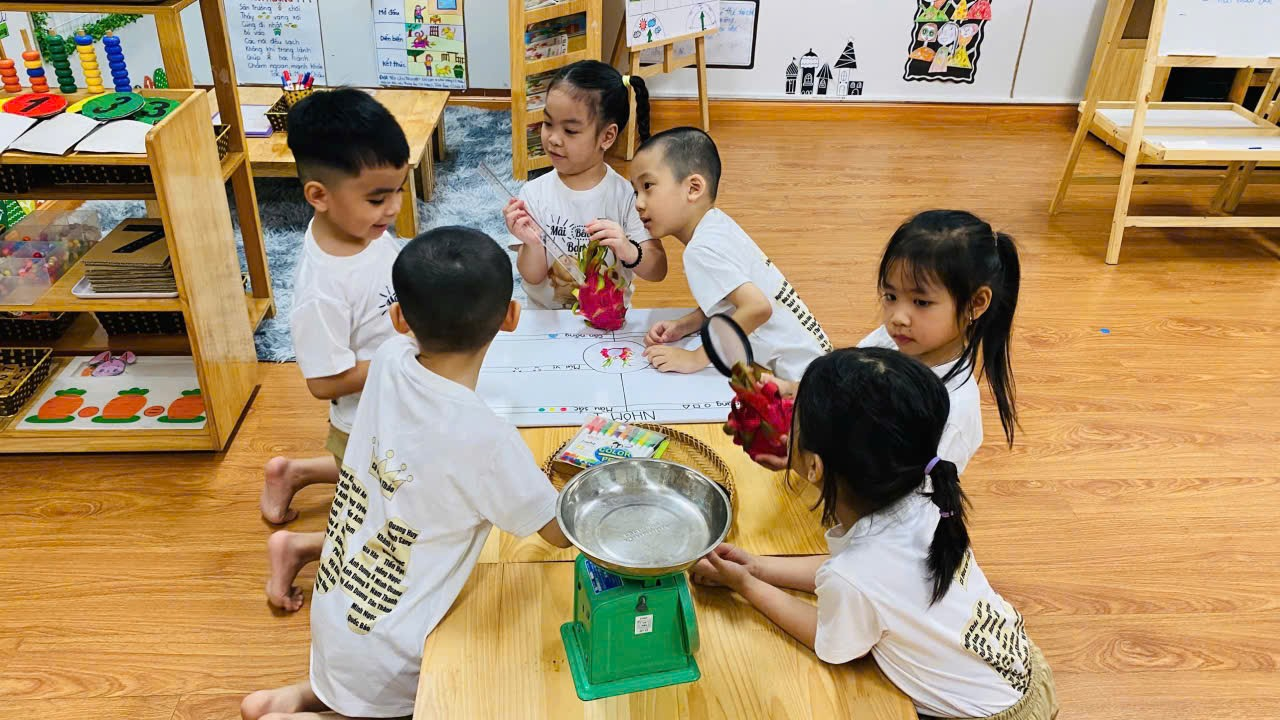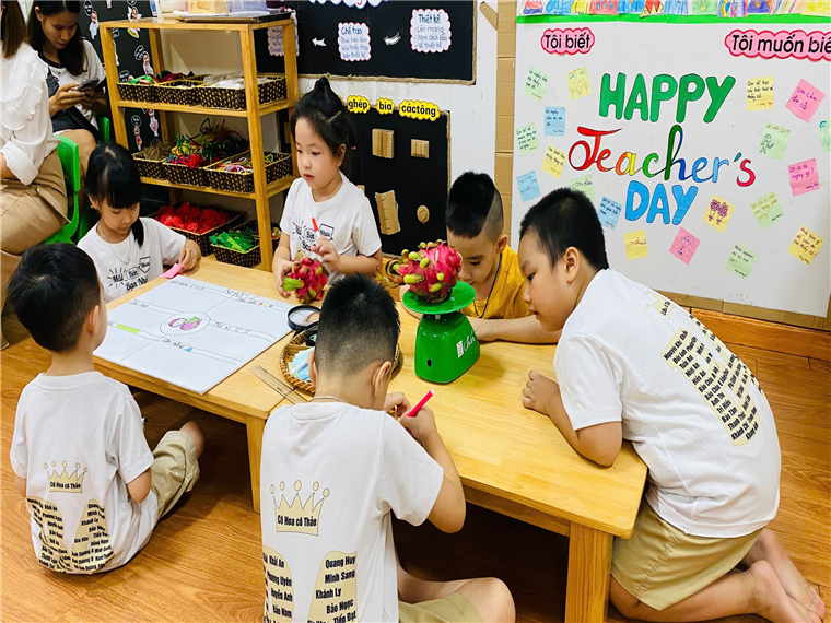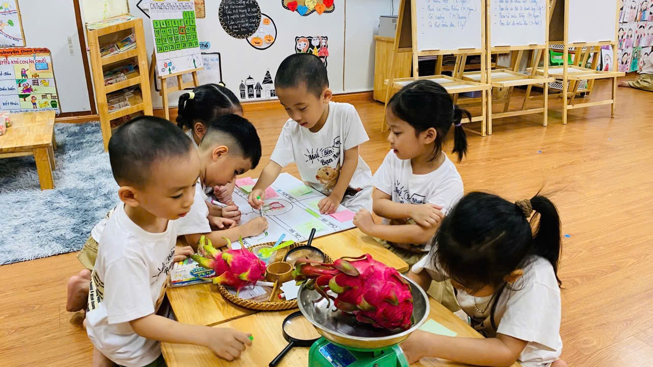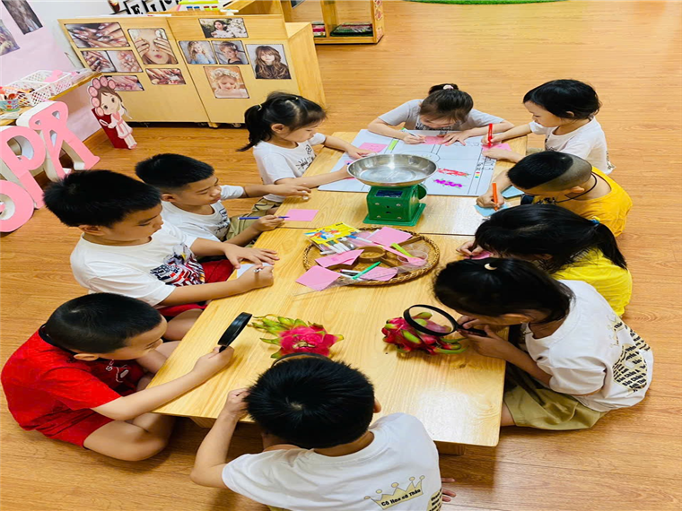 Các bé cùng nhau chia sẻ và thảo luận tìm hiểu về quả thanh long