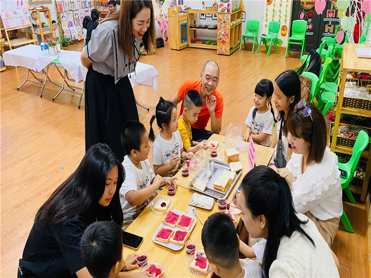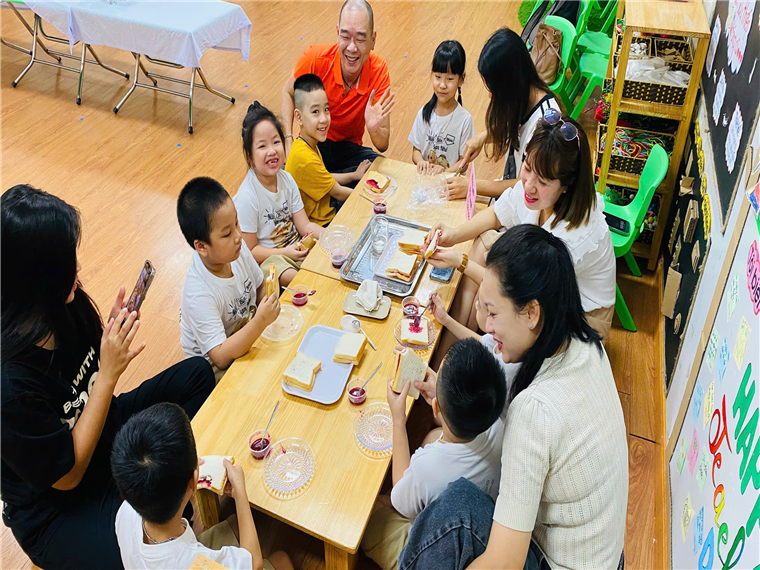 Cuối cùng các bé được mời ông bà, bố mẹ của mình tham gia trải nghiệm làm các món ăn từ quả thanh long: