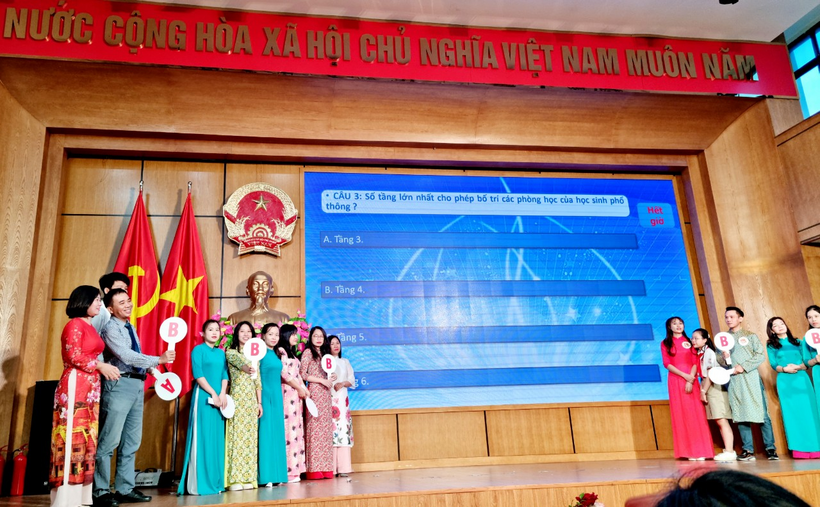 Hội thi nhằm nâng cao kiến thức pháp luật, kỹ năng nghiệp vụ PCCC cho cán bộ, giáo viên và học sinh các trường học trên địa bàn quận với phương châm 4 tại chỗ.