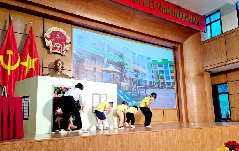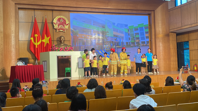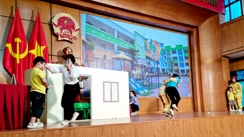 Đội Mầm non số 15 đã thể hiện xuất sắc sinh động tiểu phẩm về công tác đảm bảo an toàn PCCC&CNCH tại trường học theo đặc điểm tình hình của cấp học mầm non