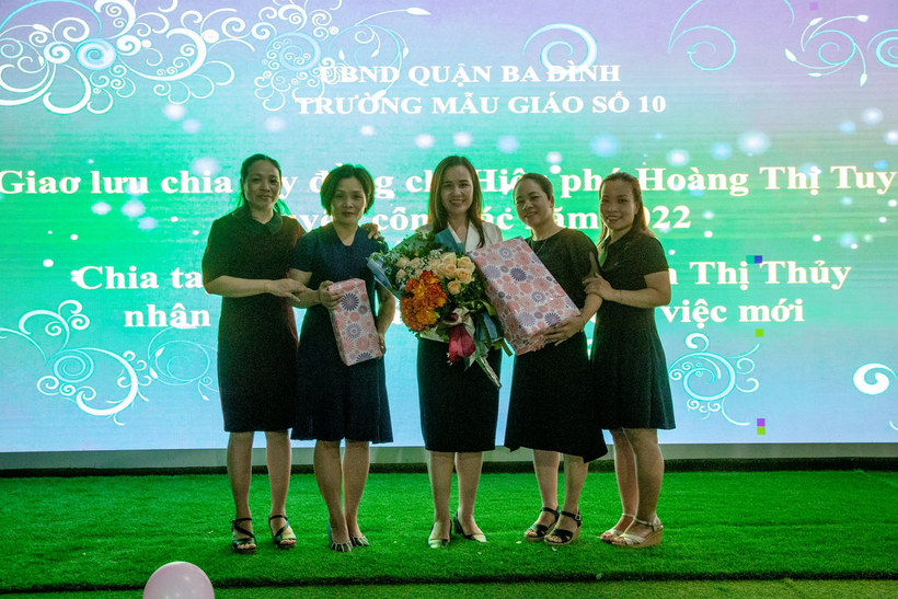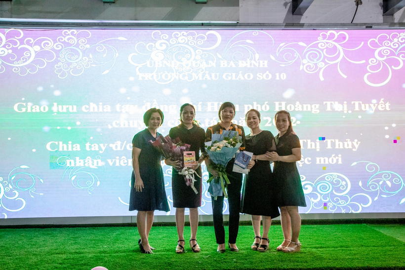 Trong buổi tiệc Gala Dinner nhà trường đã tổ chức chia tay với đồng chí Hoàng Thị Tuyế chuyển công tác do thực hiện quyết định luân chuyển viên chức CBQL năm 2022 của UBND quận Ba Đình. Buổi chia tay đầy ấn tượng và xúc động, cán bộ giáo viên, nhân viên của nhà trường đã cùng nhau xem lại những hình ảnh thân quen của đồng chí Hoàng Thị Tuyết trong thời gian làm việc tại trường. Hơn 9 năm công tác tại trường đ/c là 1 CBQL giỏi luôn làm việc với tinh thần trách nhiệm cao, thể hiện sự quan tâm chu đáo trong công việc và trong các mối quan hệ với đồng chí, đồng nghiệp và các con học sinh, đ/c luôn cố gắng, tận tâm với nghề, nhiệt tình, trách nhiệm với công việc, hết lòng vì nhà trường, vì học sinh, luôn hoàn thành tốt nhiệm vụ được giao, đ/c đã đạt danh hiệu Lao động tiên tiến, Chiến sĩ thi đua cấp cơ sở, được tặng danh hiệu đảng viên xuất sắc năm 2021. Nhà trường, công đoàn, các tổ chuyên môn đã có những bó hoa tươi thắm và những món quà lưu niệm gửi tặng đ/c Hoàng Thị Tuyết trước lúc chia tay. Các tổ chuyên môn, chi đoàn đã có các tiết mục văn nghệ để chúc mừng và tri ân đối với đ/c Hoàng Thị Tuyết. Chúc đồng chí Hoàng Thị Tuyết nhận nhiệm vụ mới luôn mạnh khỏe, hạnh phúc và tiếp tục hoàn thành xuất sắc nhiệm vụ được giao tại đơn vị mới.